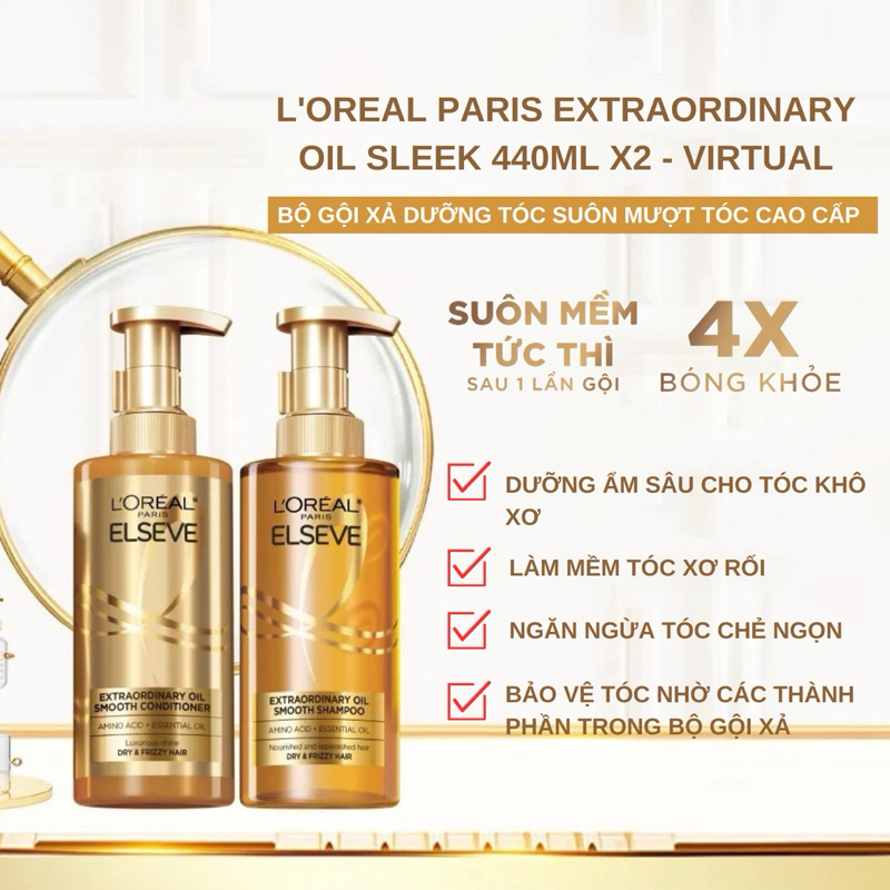 Bộ gội xả LOREAL PARIS Elseve Extraordinary Oil Smooth 440ml/ chai