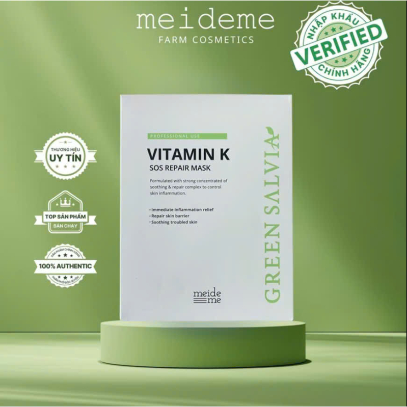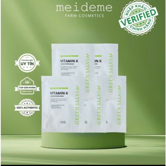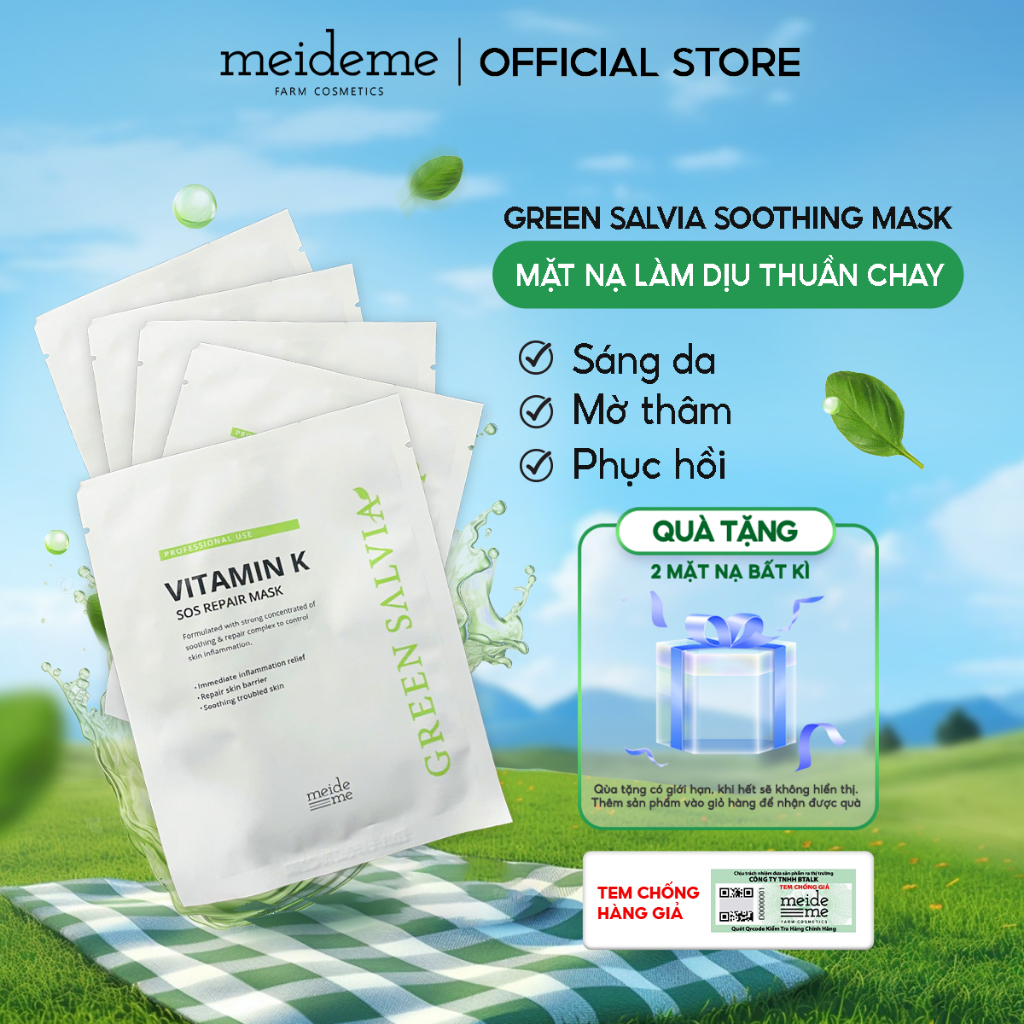 Mặt nạ Meideme Vitamin K Green Salvia SOS Mask 23g - lẻ miếng mặt nạ phục hồi làm dịu da thuần chay