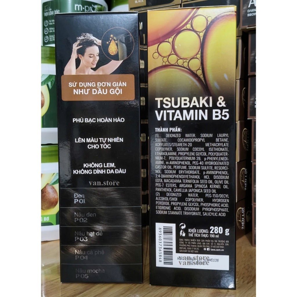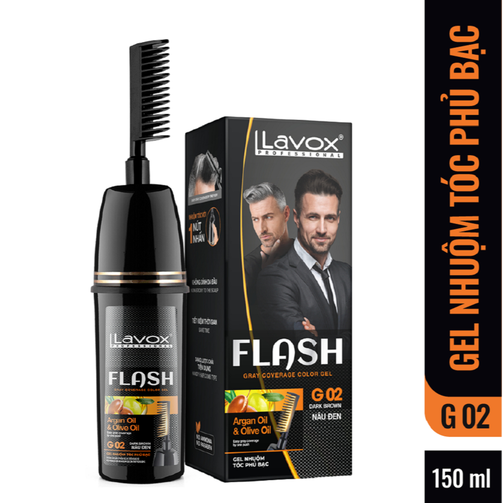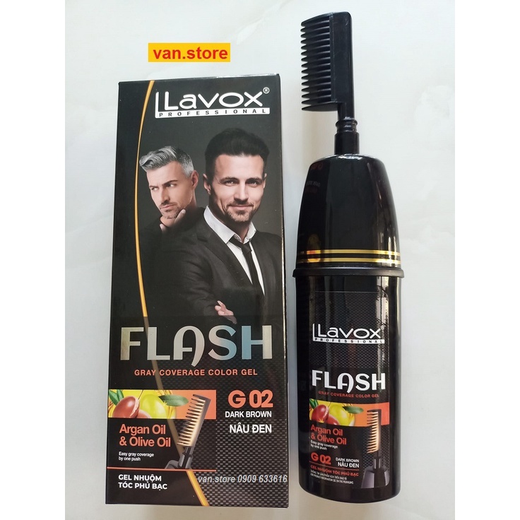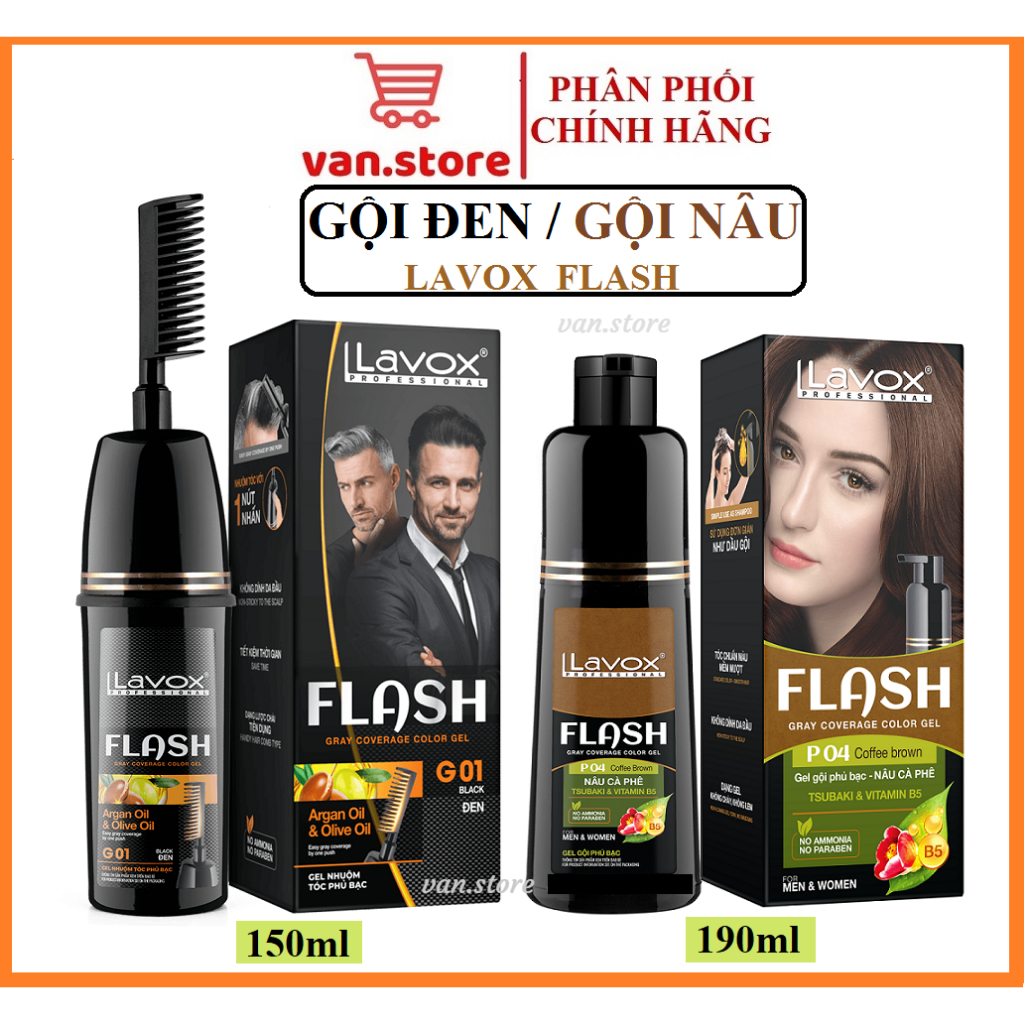 (Đen/ Nâu) Gel gội phủ bạc Tsubaki & Vitamin B5 Lavox 190ml / Gel nhuộm phủ bạc Argan & Olive Oil Lavox 150ml (Có Lược)