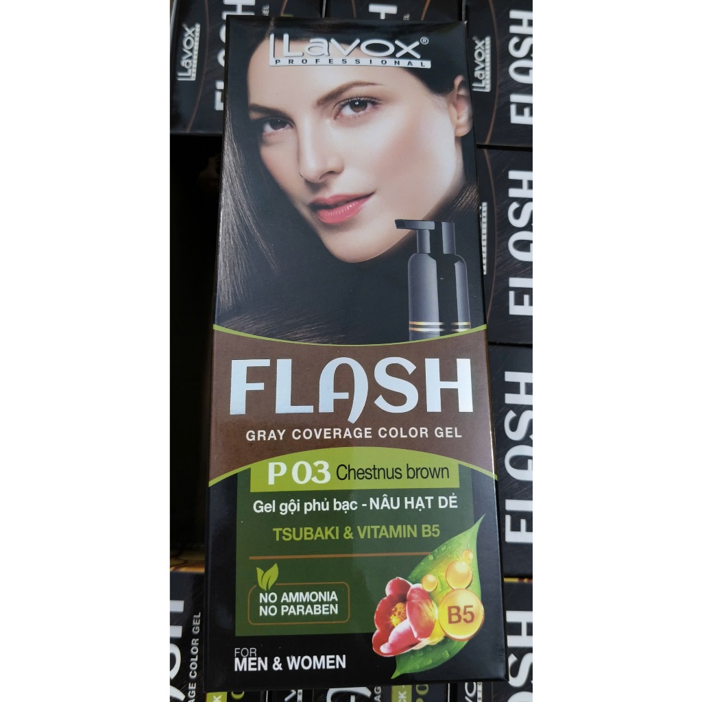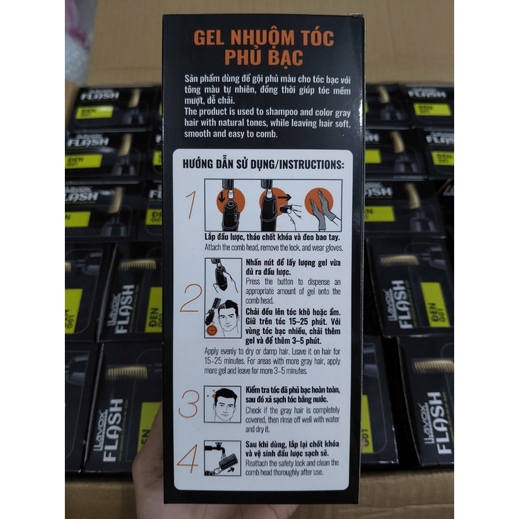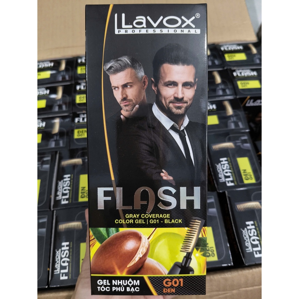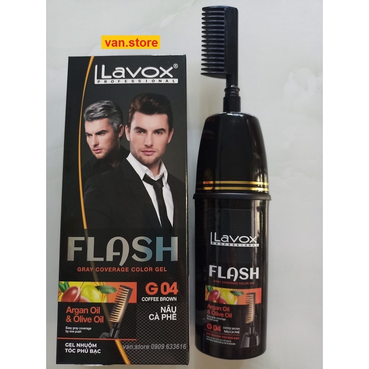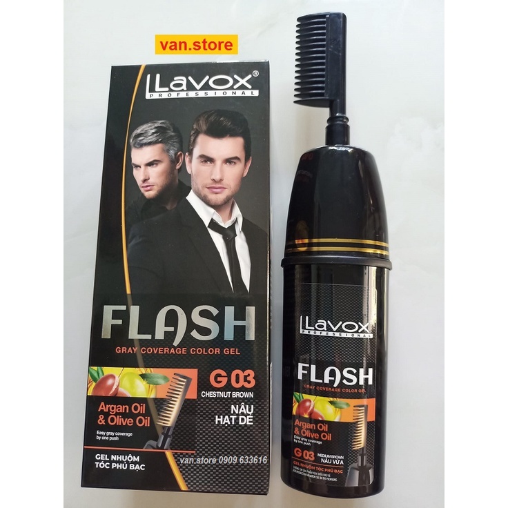 (Đen/ Nâu) Gel gội phủ bạc Tsubaki & Vitamin B5 Lavox 190ml / Gel nhuộm phủ bạc Argan & Olive Oil Lavox 150ml (Có Lược)