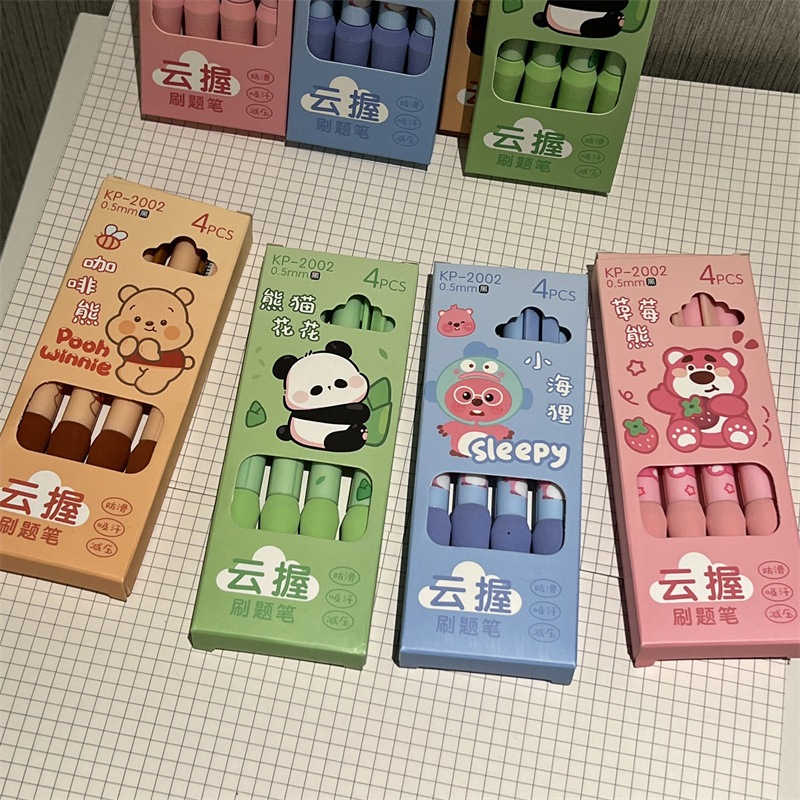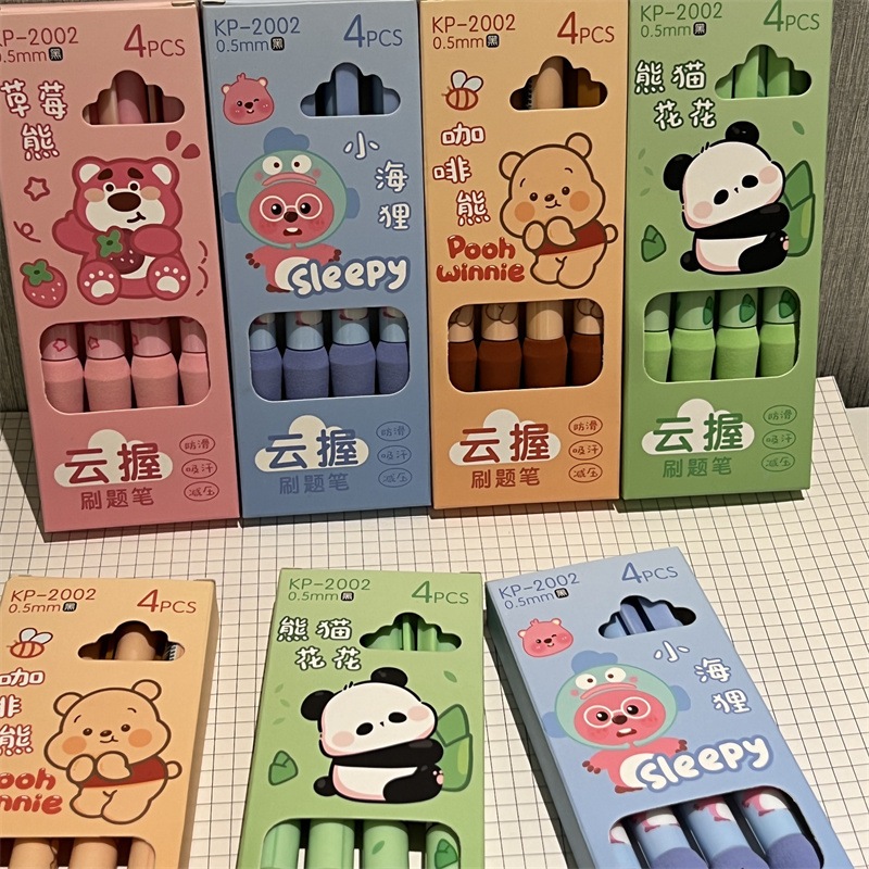 4 Cái / bộ 0.5 Mm Hoạt Hình Bút Gel Mực Đen Bảo Vệ Ngón Tay Bút Xốp