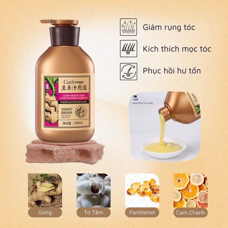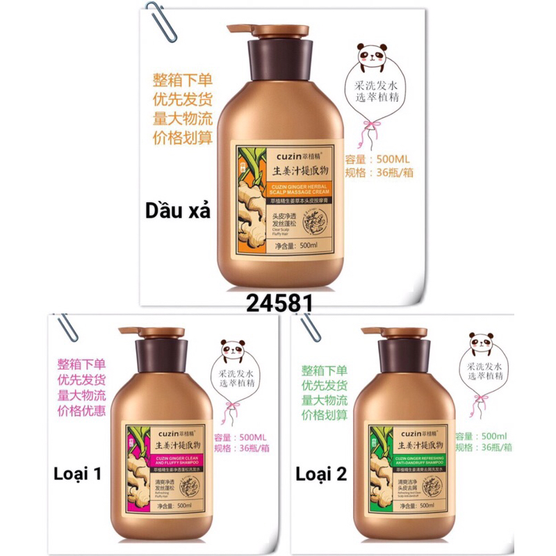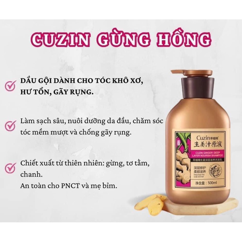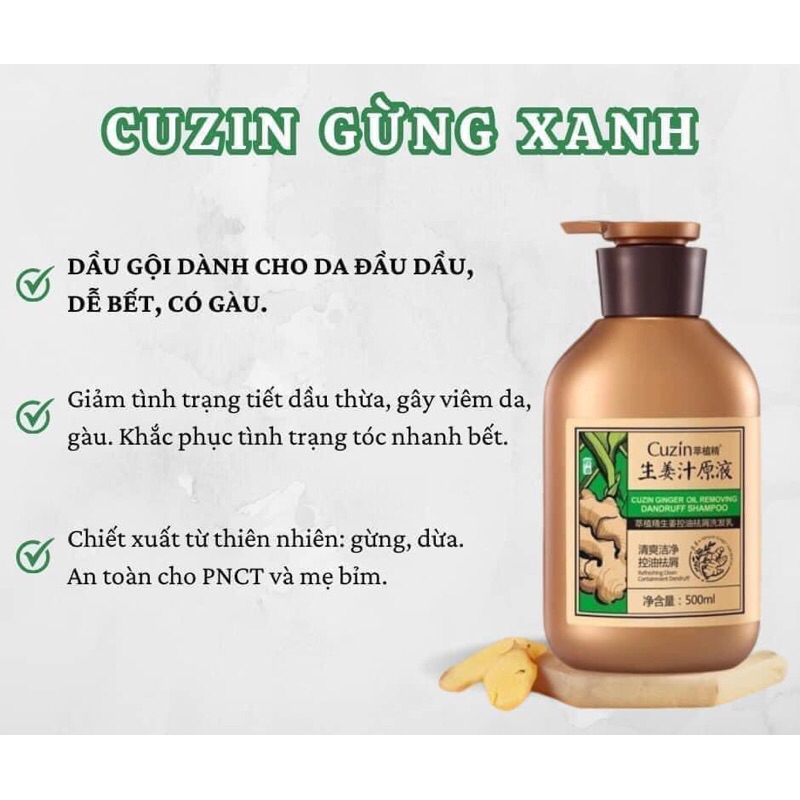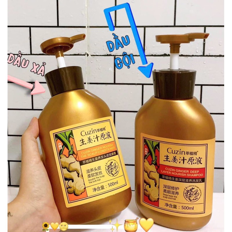 Cặp dầu gội + dầu xả Gừng CUZIN chiết xuất thiên nhiên 500ml