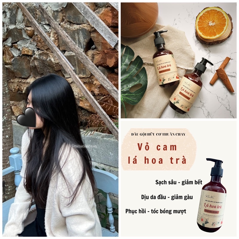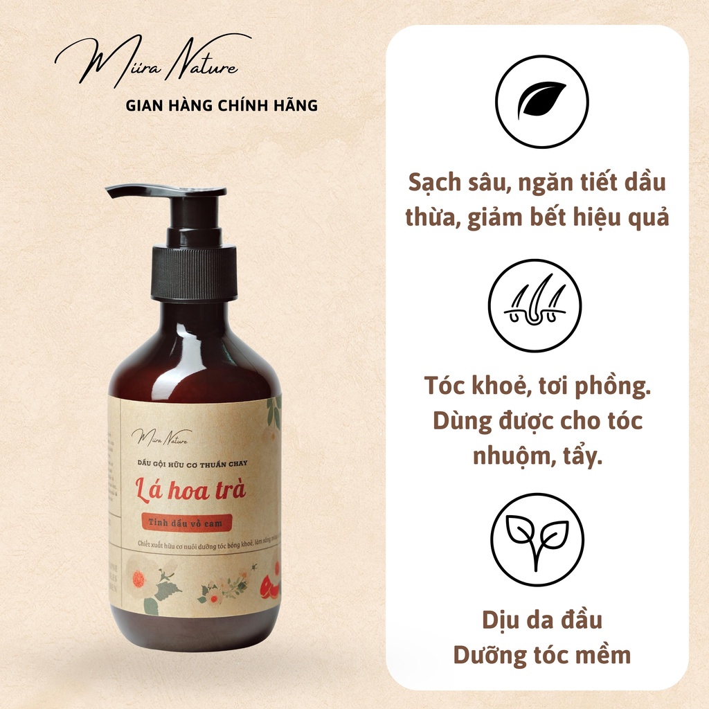 Dầu Gội Lá Hoa Trà Tinh Dầu Vỏ Cam Cô Đặc, Sạch Sâu, Giảm Bết, Dưỡng Tóc Mềm Mượt MIIRA NATURE