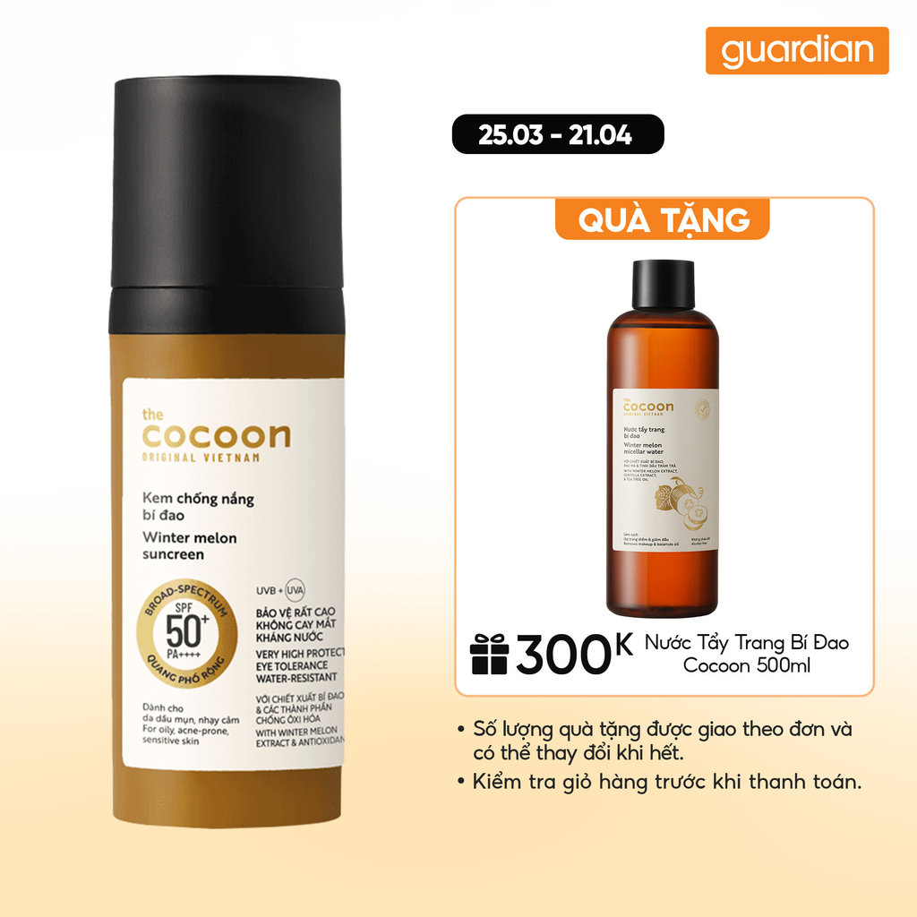 Kem Chống Nắng Bí Đao Quang Phổ Rộng Dành Cho Da Dầu, Nhạy Cảm Cocoon Winter Melon Sunscreen 50Ml