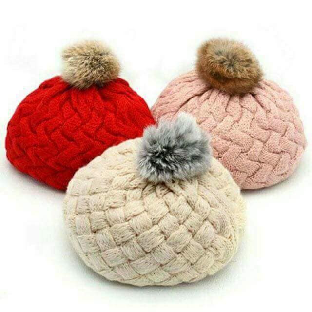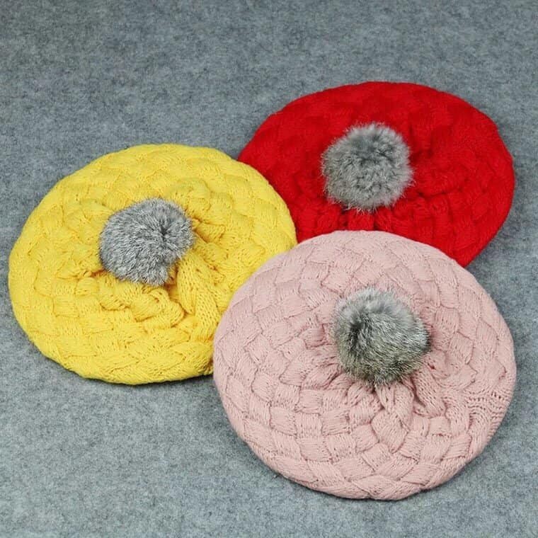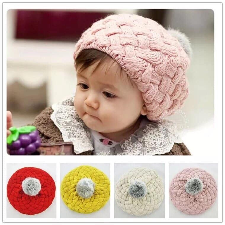 Mũ len nồi cho bé gái / mũ len nồi quả bông