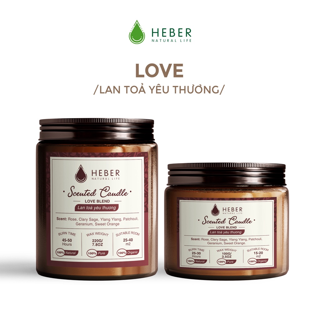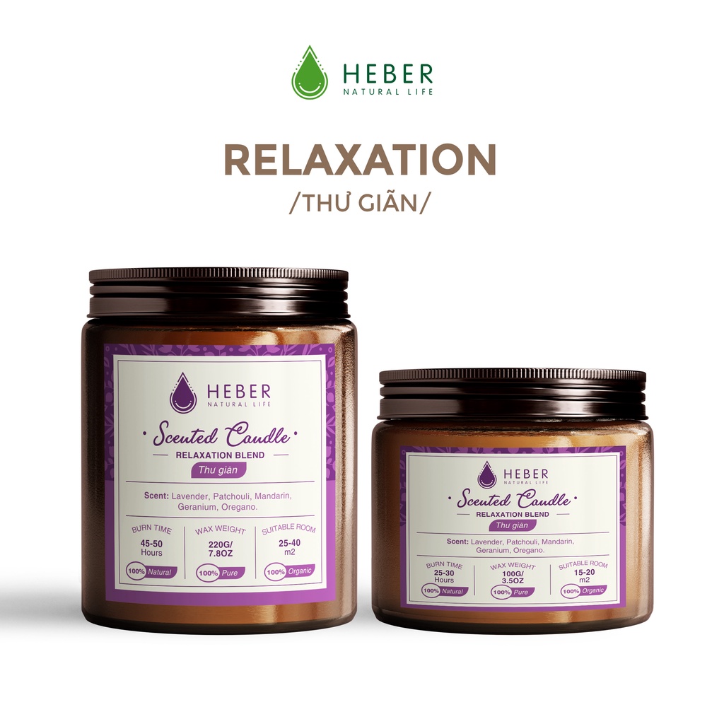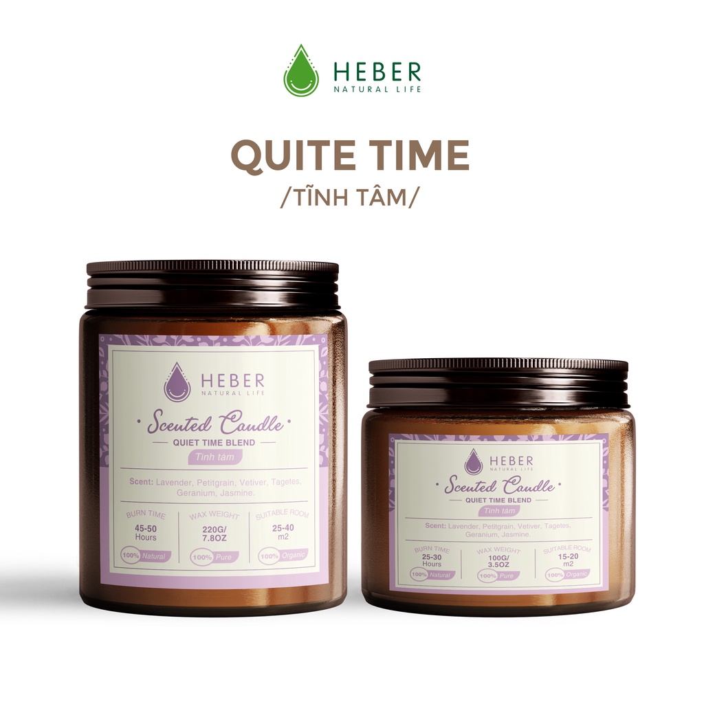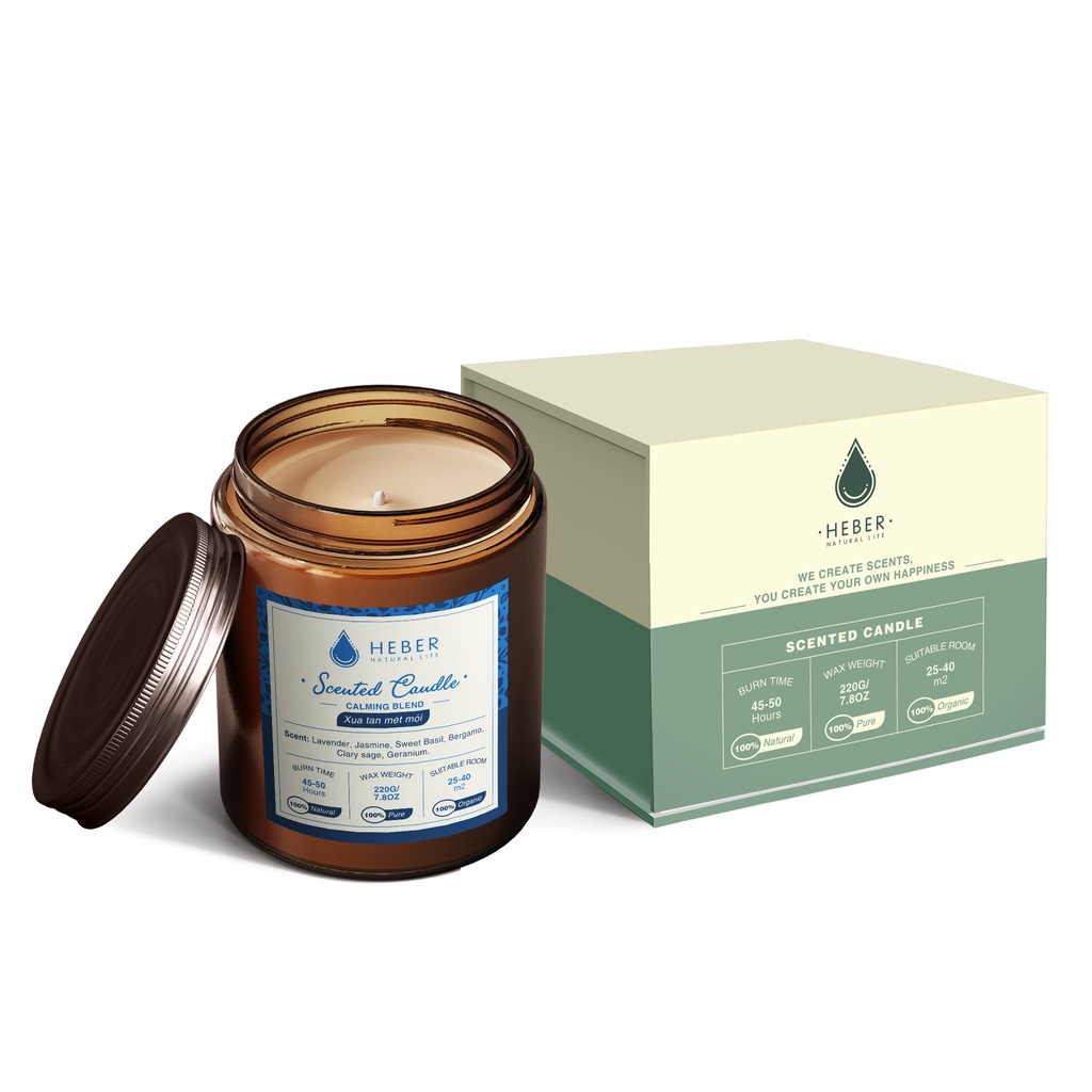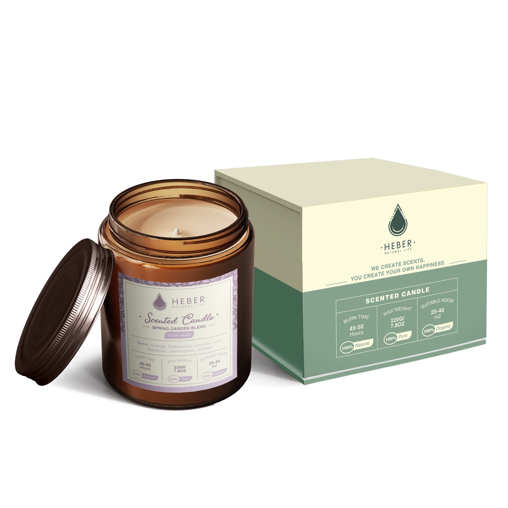 Nến Thơm Phòng Cao Cấp Heber Natural Life Scented Candle Từ Tinh Dầu Thiên Nhiên & Sáp Dừa 100g/220g