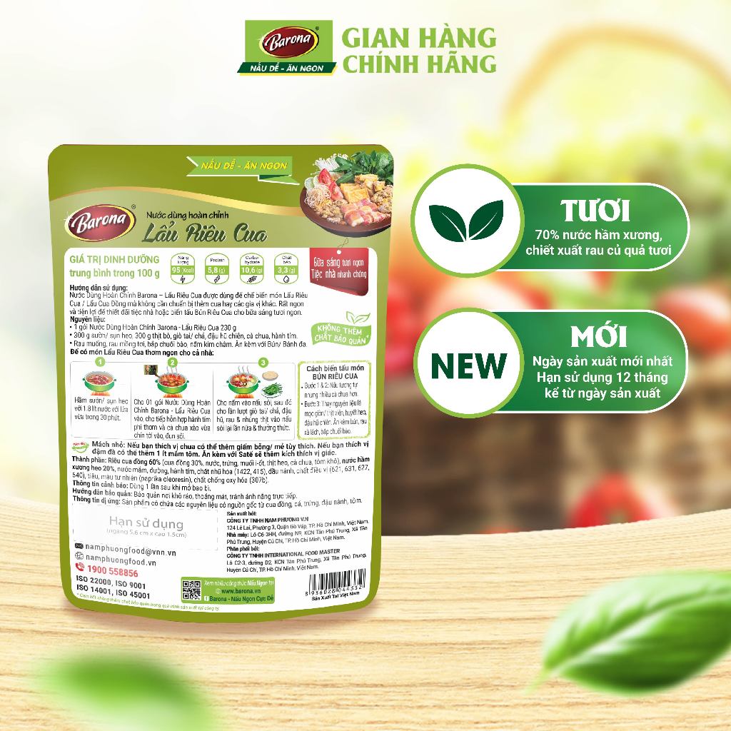 Nước Dùng Lẩu Riêu Cua Barona 230g tươi ngon chuẩn vị không cần nêm nếm