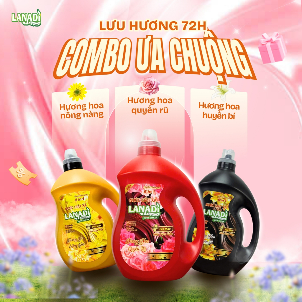 Nước Giặt Xả Lanadi 5in1 Công Nghệ lưu hương kép Premium Pertume Bản Pro Max Siêu Đậm Đặc 3.6kg