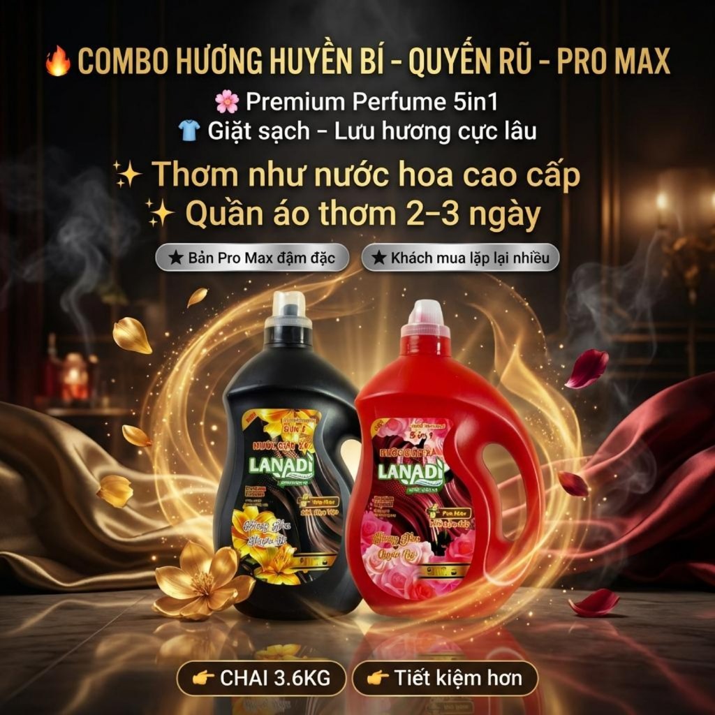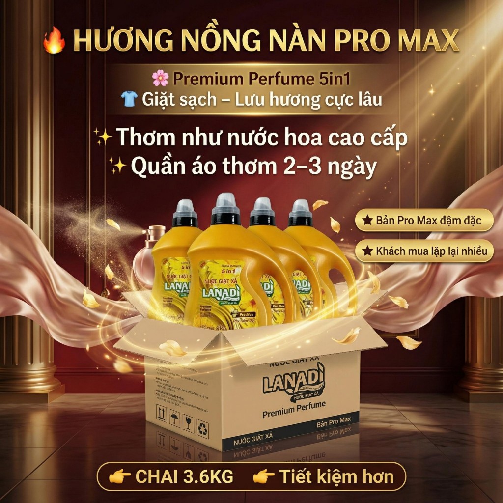 Nước Giặt Xả Lanadi pro max  5in1 Công Nghệ Lưu Hương Kép, Hương Nước Hoa Cao Cấp