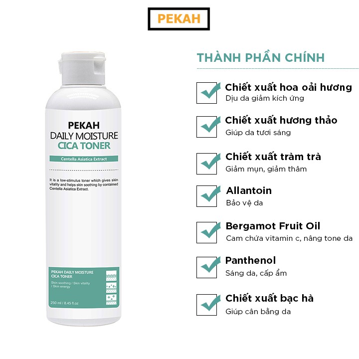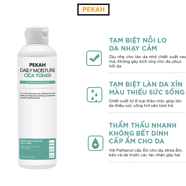 Nước hoa hồng PEKAH chiết xuất rau má dành cho da mụn PEKAH Daily Moisture Cica Toner 250ml