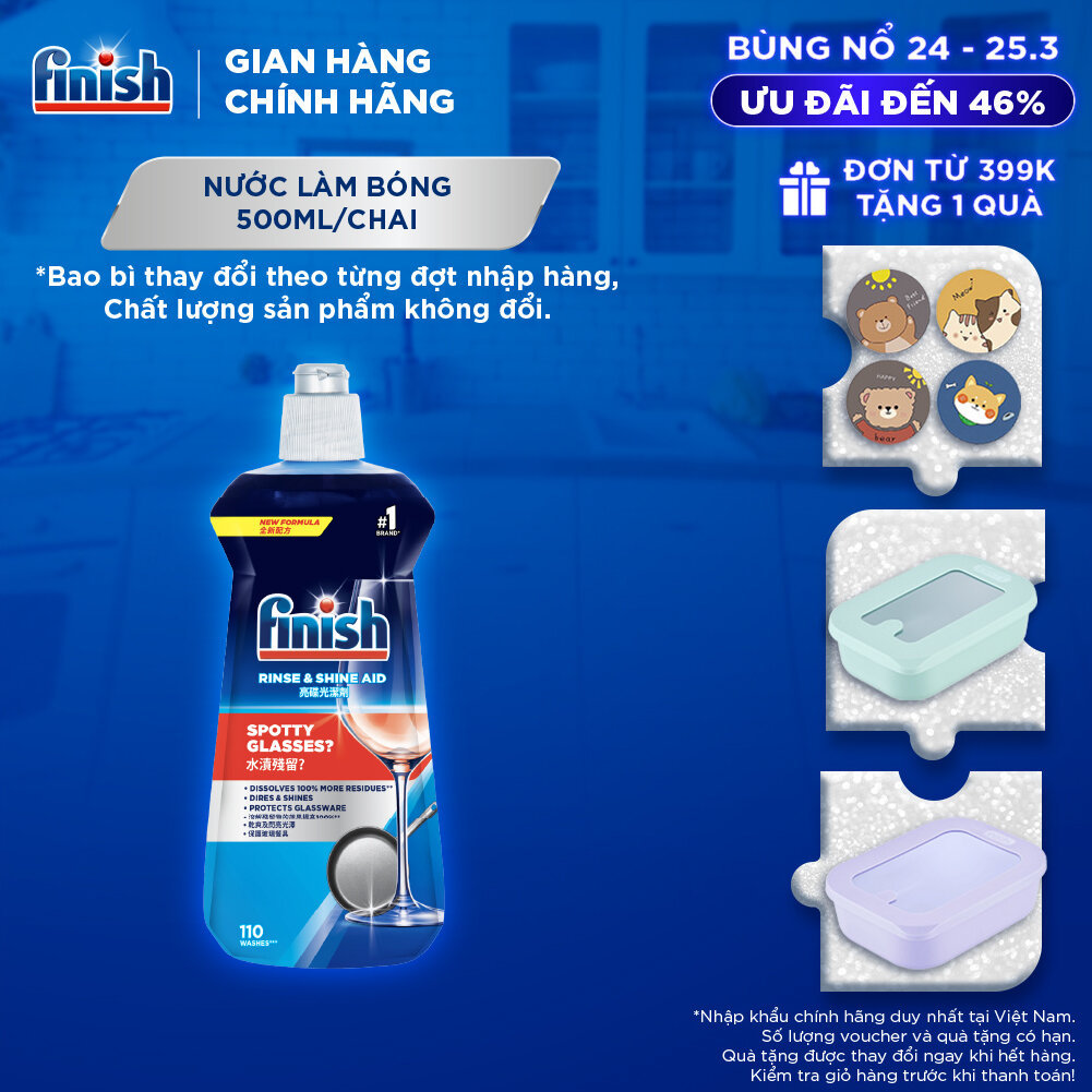 Nước Làm Bóng Chén Bát Finish Rinse & Shine Aid - chai 500ML