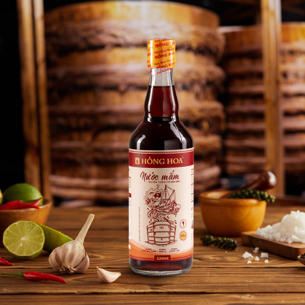Nước Mắm Phú Quốc Hồng Hoa 40 độ đạm 520ml, Nước Mắm Nhĩ Cá Cơm Truyền Thống