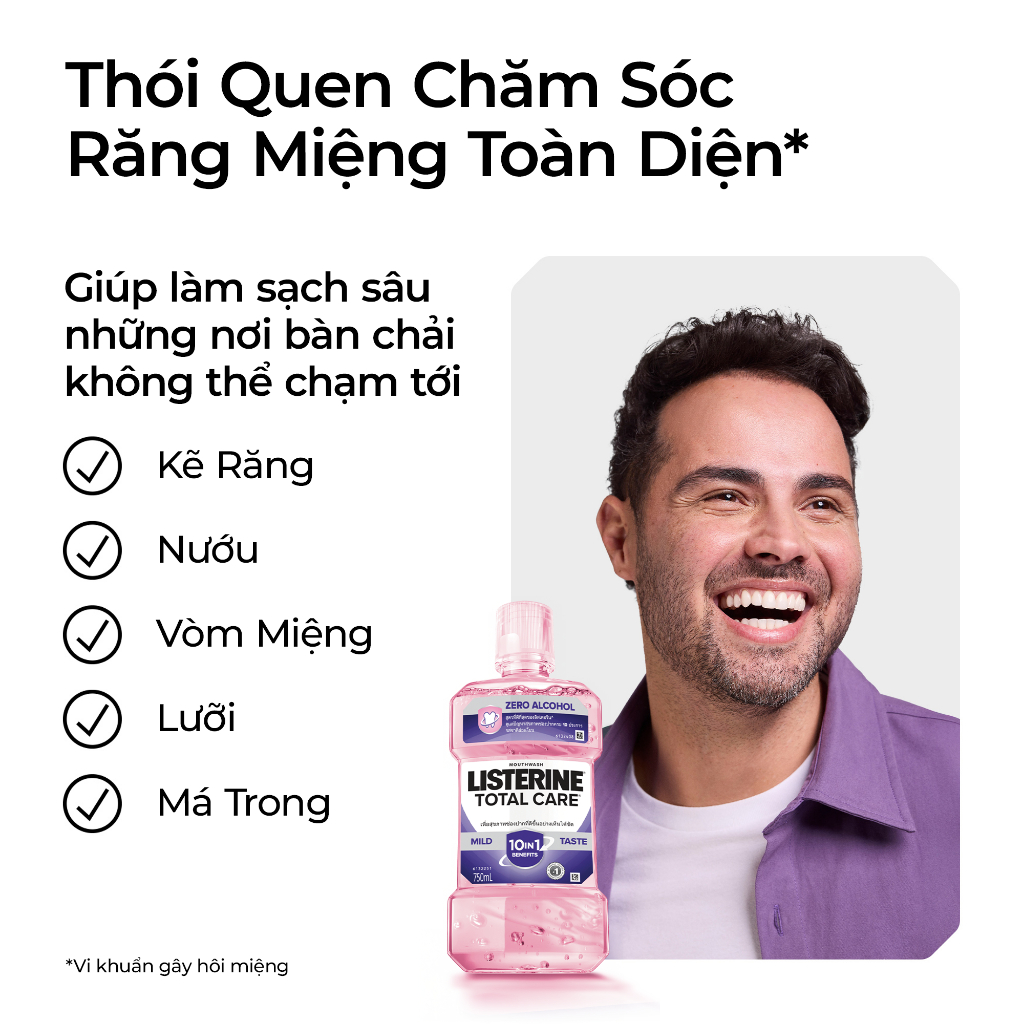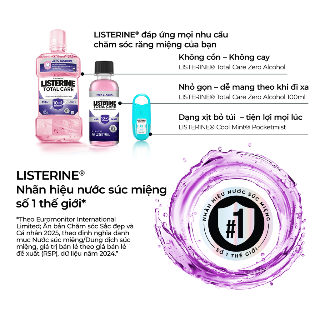 Nước Súc Miệng Chăm Sóc Toàn Diện Không Cay Listerine Total Care Zero Alcohol Mouthwash 750ml