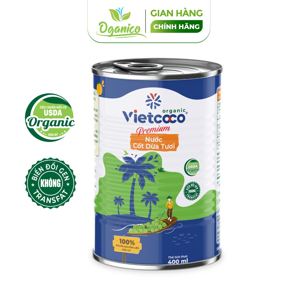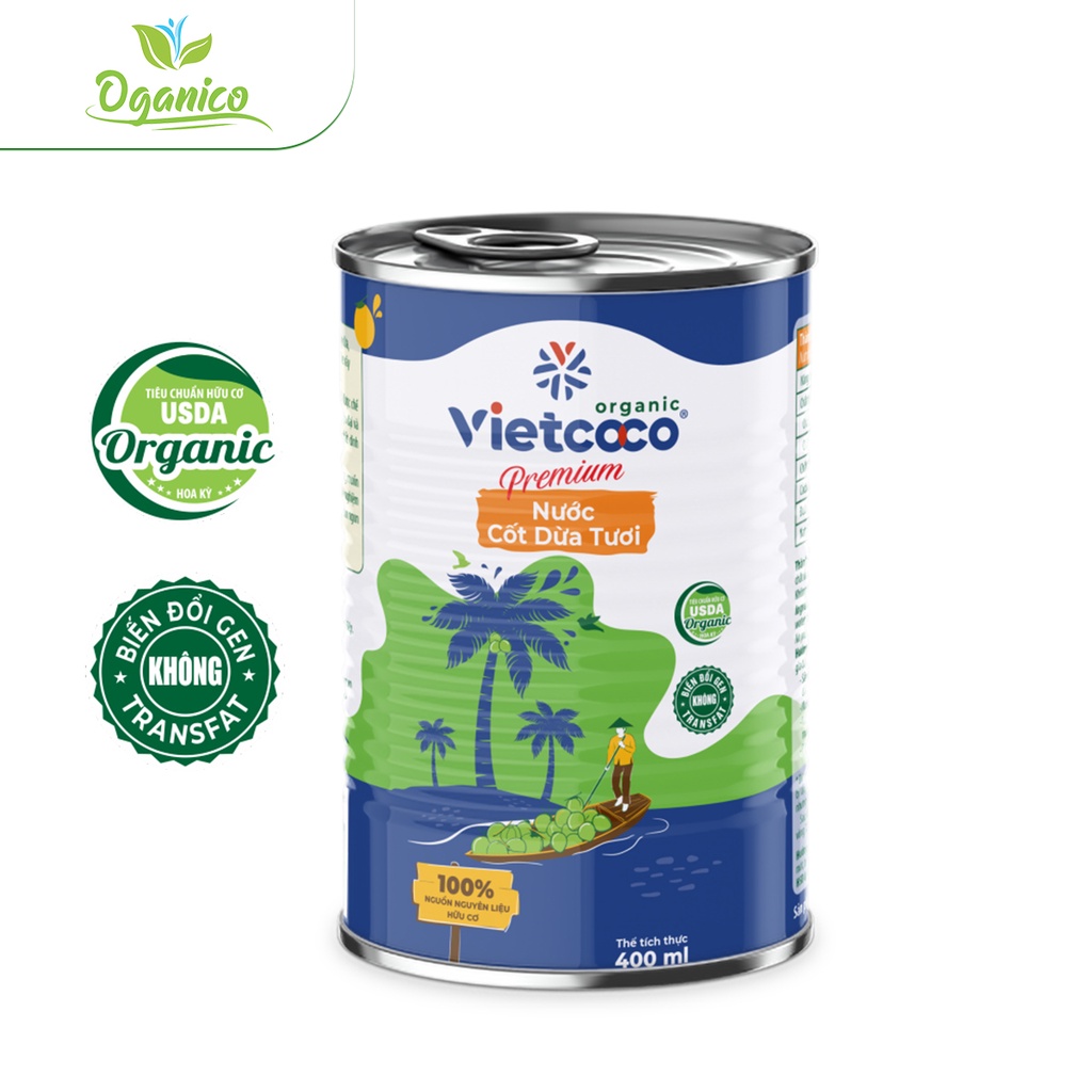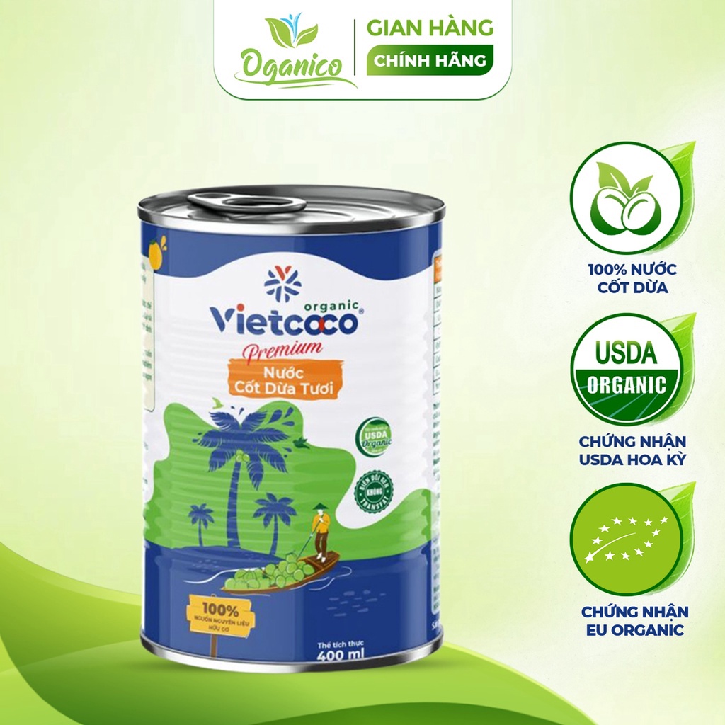 Nước cốt dừa tươi nguyên chất hữu cơ Vietcoco Coconut Cream đóng hộp lon 400ml - Oganico