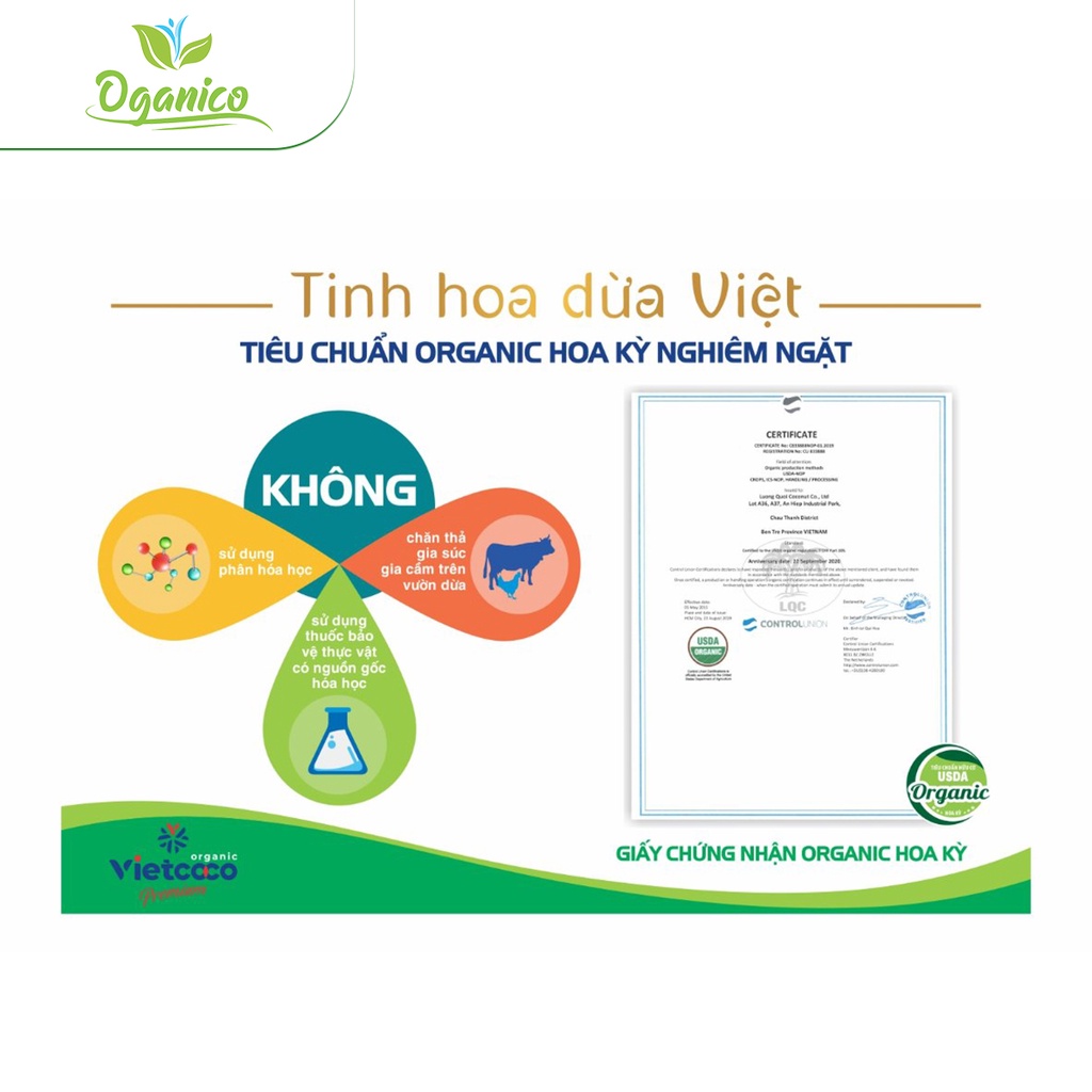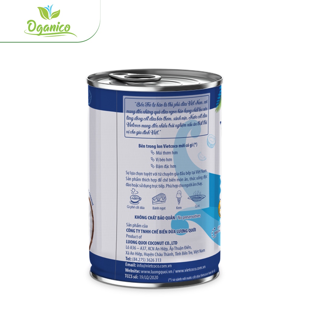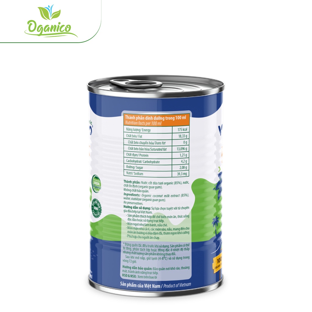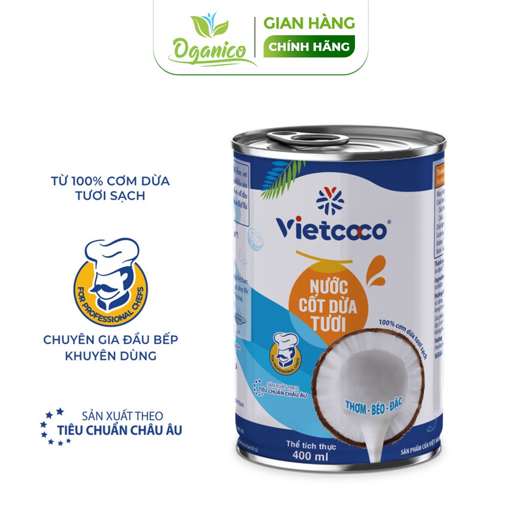 Nước cốt dừa tươi nguyên chất hữu cơ Vietcoco Coconut Cream đóng hộp lon 400ml - Oganico