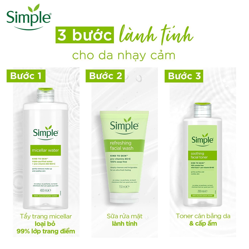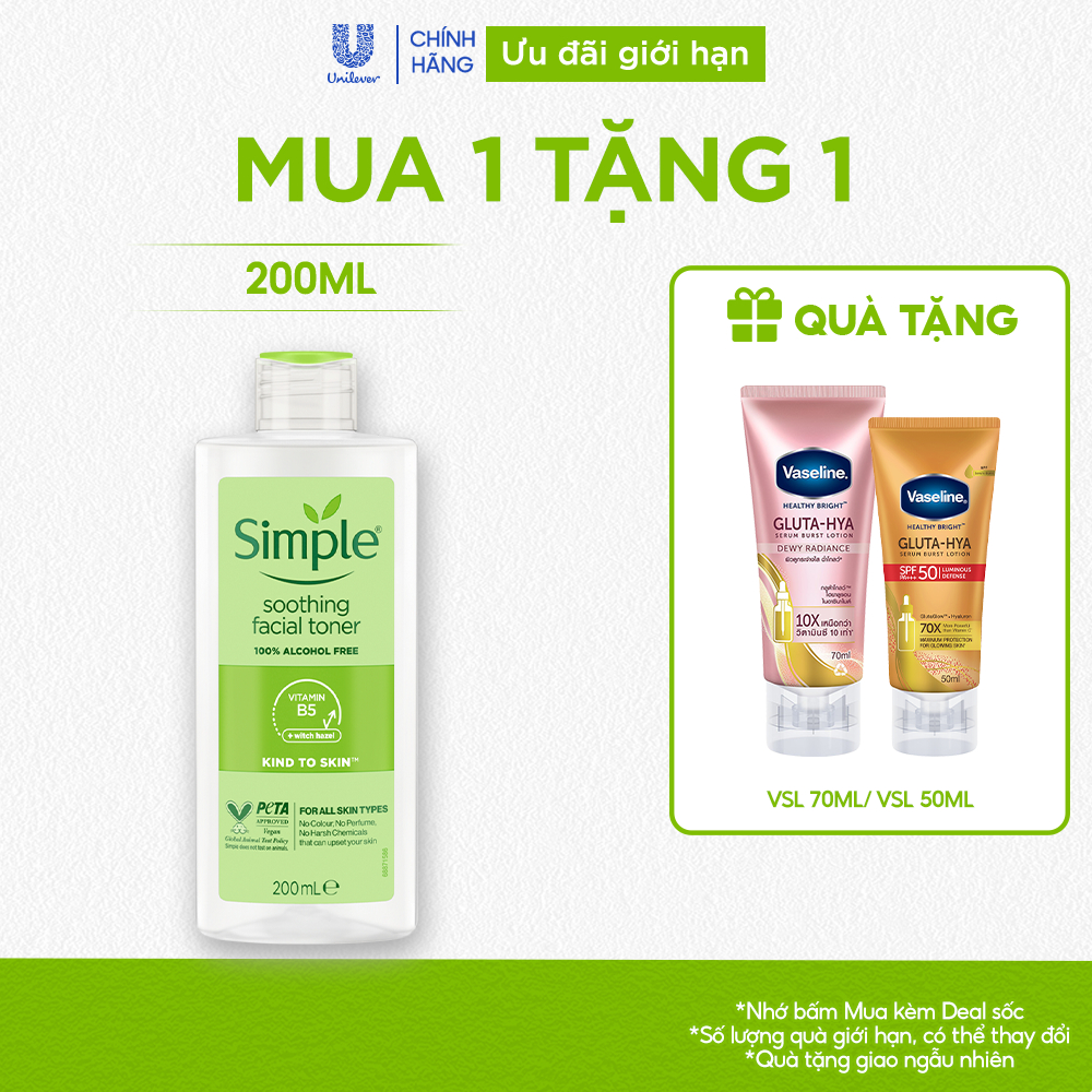 Nước hoa hồng Simple Toner làm dịu và cân bằng độ ẩm cho da - lành tính 200ml [CHÍNH HÃNG ĐỘC QUYỀN]