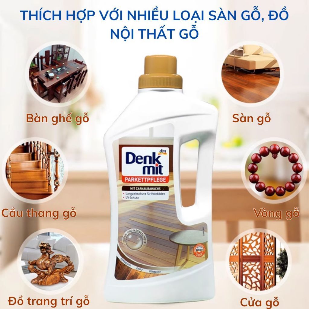 Nước lau sàn gỗ Denkmit - 1L làm sạch và bảo dưỡng sàn gỗ