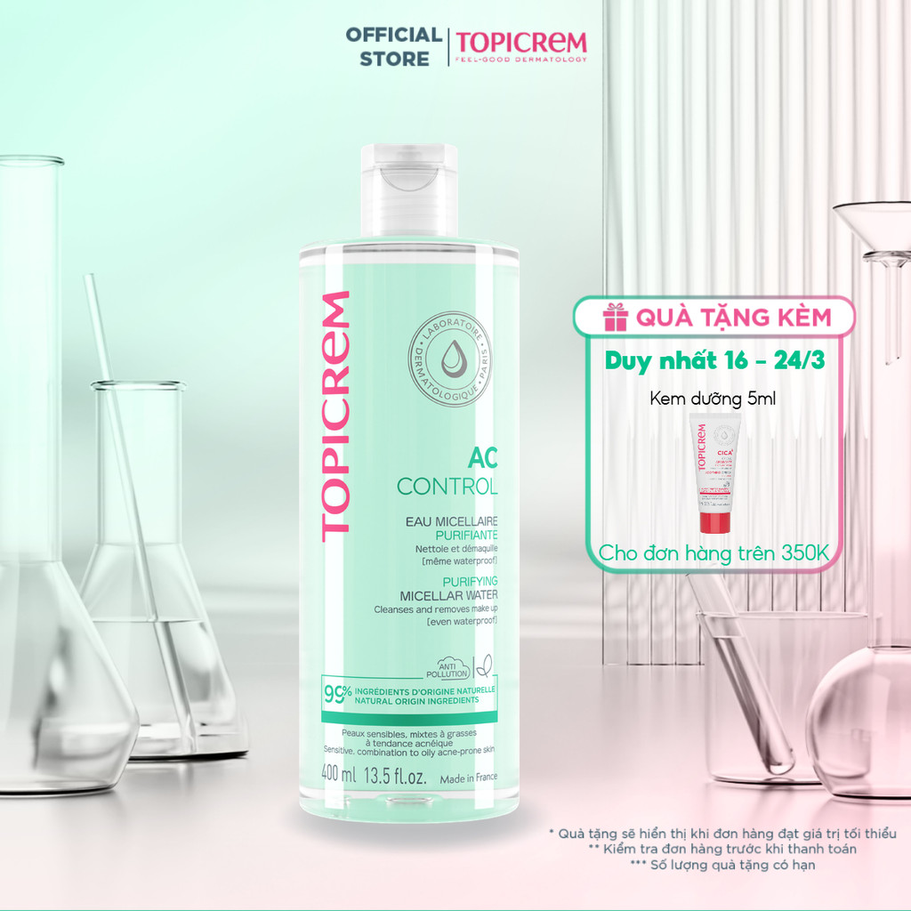 Nước tẩy trang dành cho da dầu mụn TOPICREM AC PURIFYING MICELLAR WATER 400ml