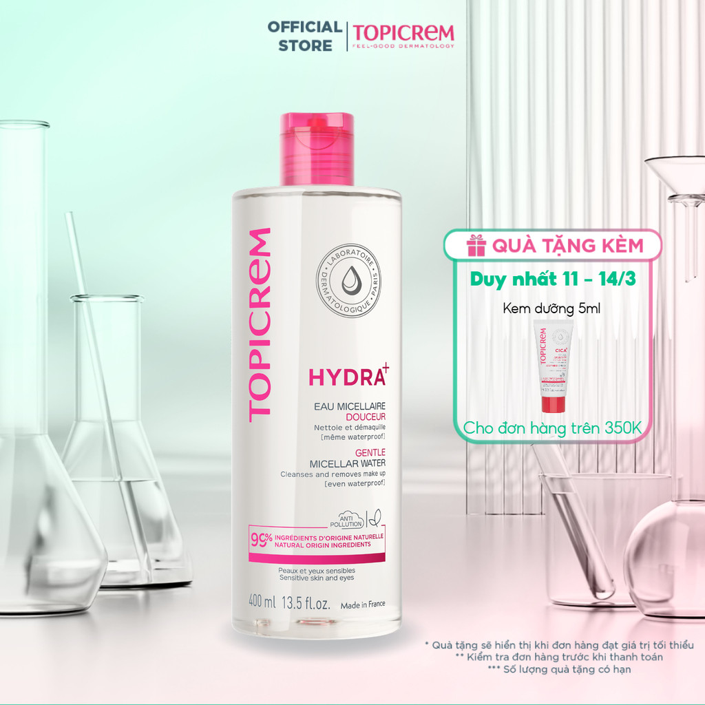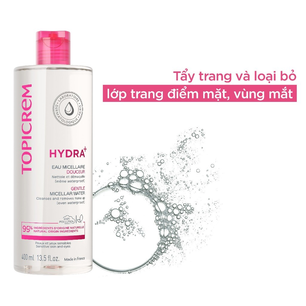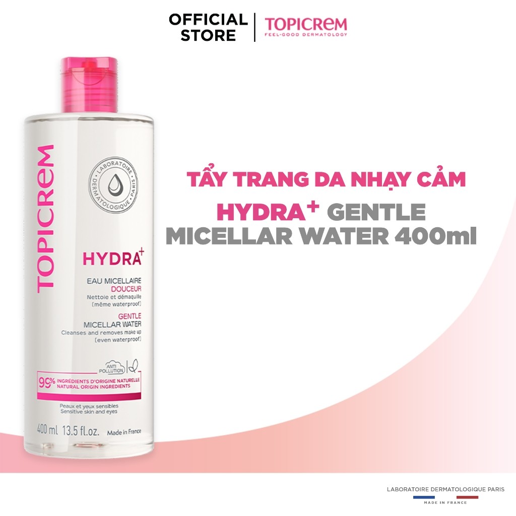 Nước tẩy trang dịu nhẹ TOPICREM HYDRA+ GENTLE MICELLAR WATER 400ML