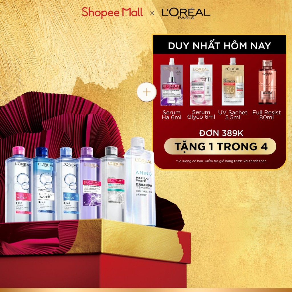 [AMINO MICELLAR MỚI] Nước tẩy trang làm sạch sâu, loại bỏ bụi bẩn & trang điểm 3-in-1 L'Oreal Paris Micellar Water 400ml