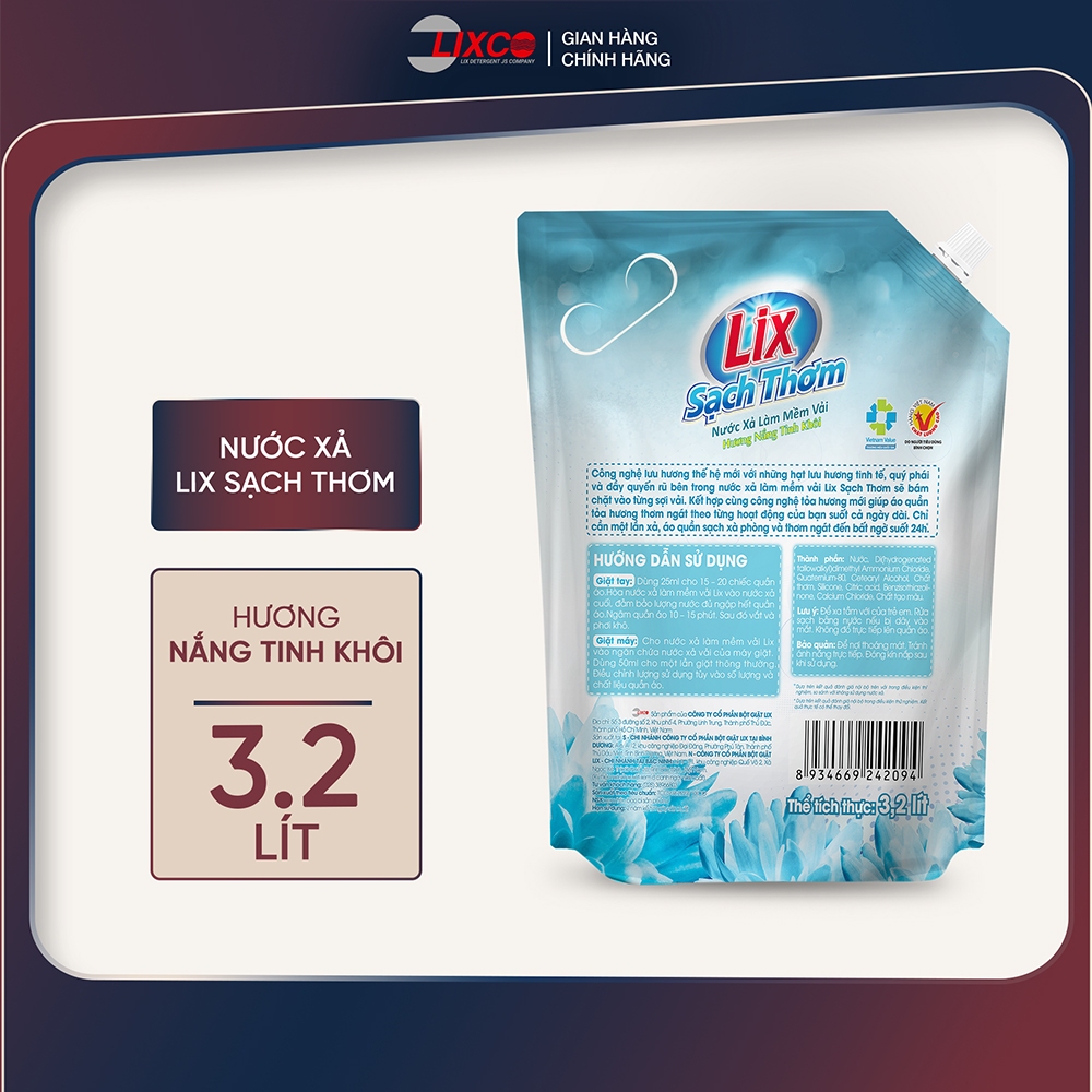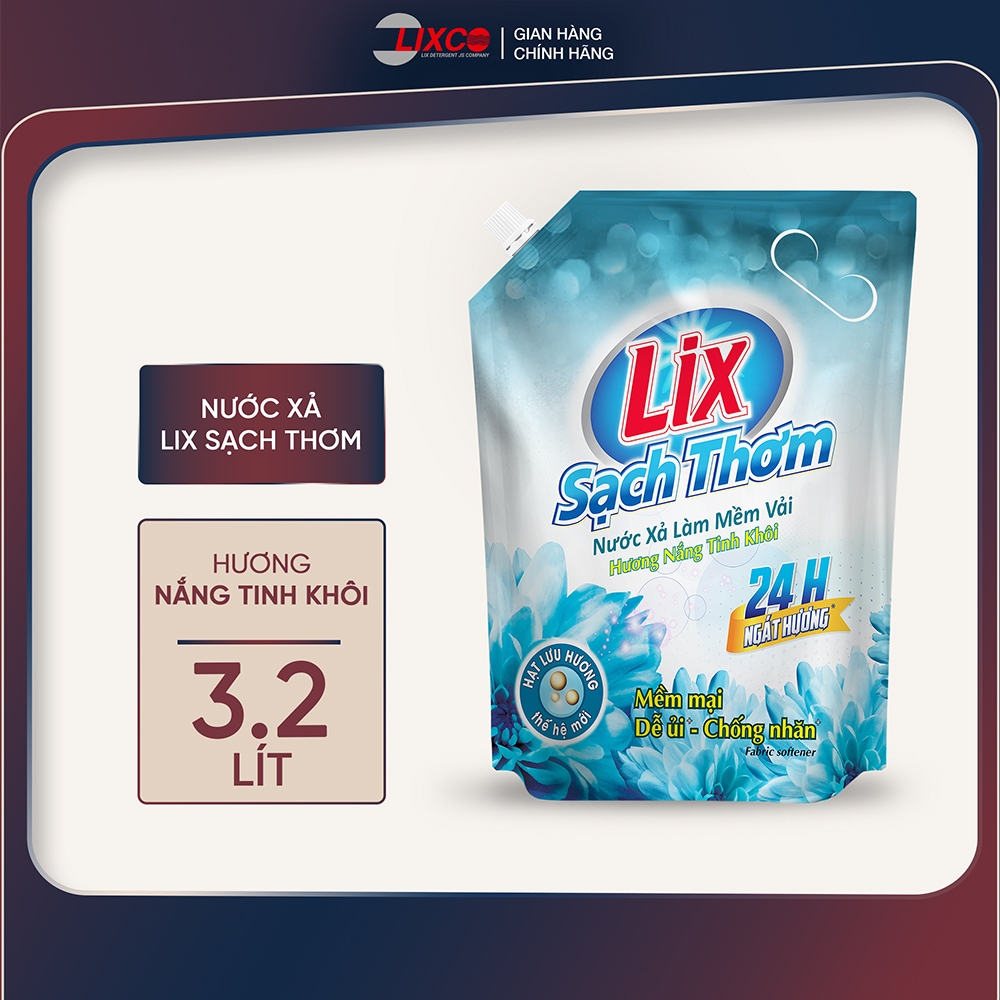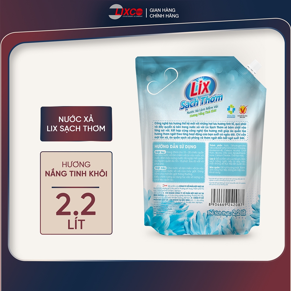 Nước xả Lix làm mềm vải sạch thơm hương nắng tinh khôi, nước xả vải thơm lâu Lixco Việt Nam