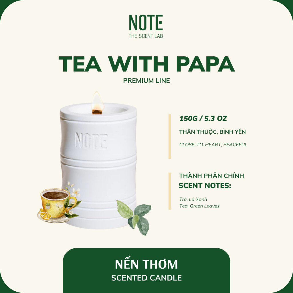 Nến PREMIUM NOTE -The Scent Lab dòng TEA WITH PAPA | Thân thuộc - Bình yên