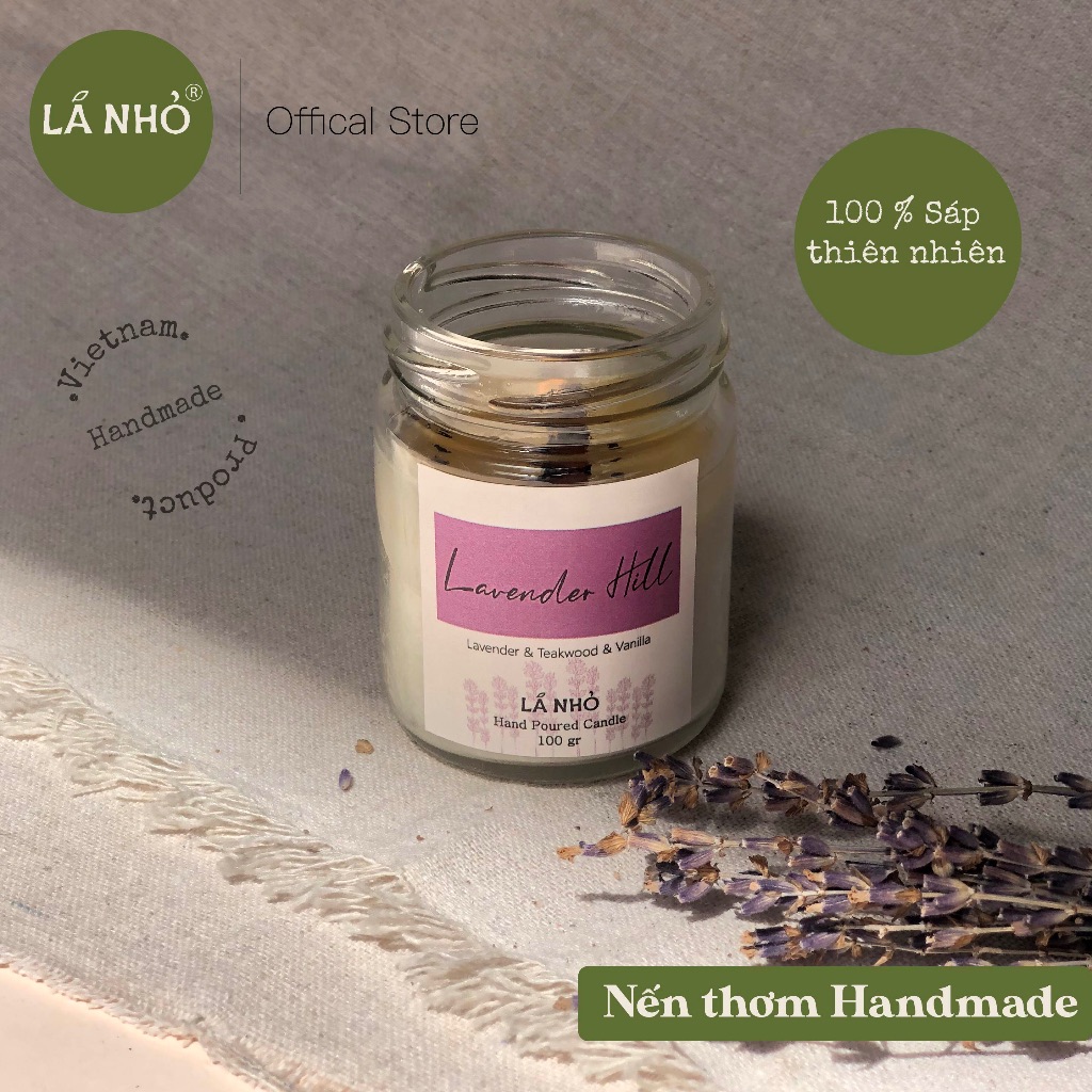 Nến thơm Thư Giãn Ngủ ngon- Lavender Hill (Oải Hương + Gỗ Teak + Vanilla) - LÁ NHỎ.