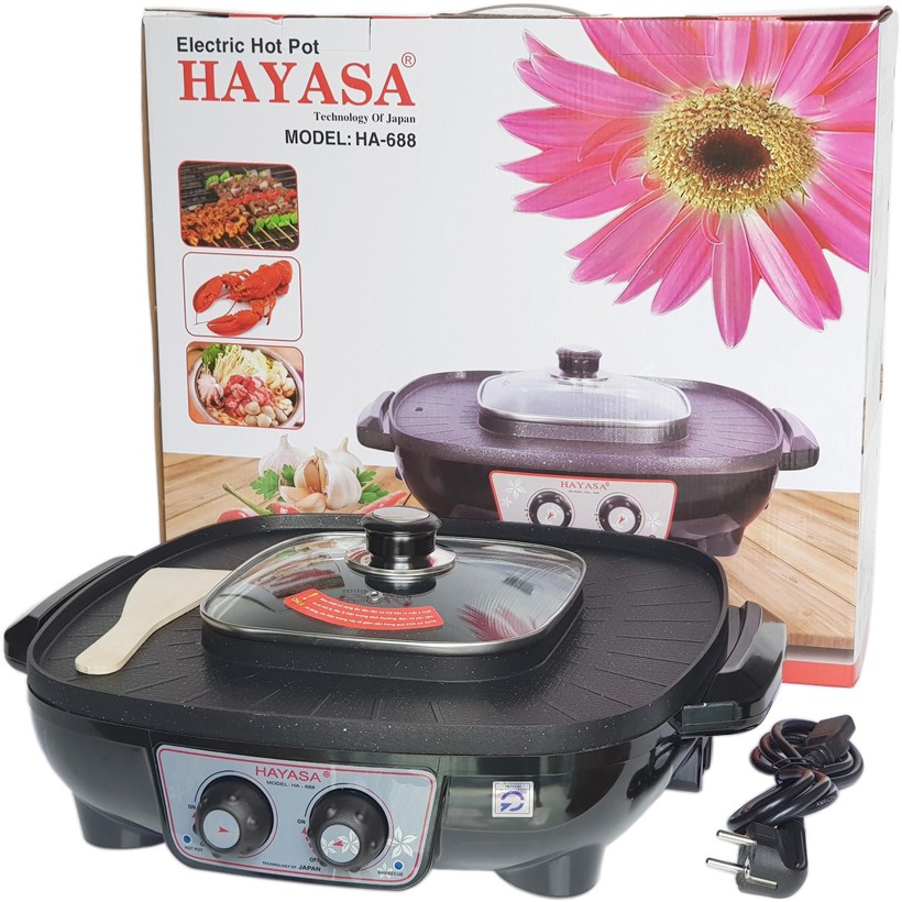 Nồi Lẩu Điện Nướng Vuông 2 trong 1 Cao Cấp Hayasa HA-688 vừa nấu lẩu vừa nướng