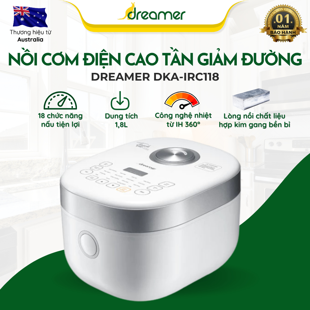 Nồi cơm điện cao tần giảm đường DREAMER DKA-IRC118, 1.8 lít, lòng nồi hợp kim gang, 18 chức năng