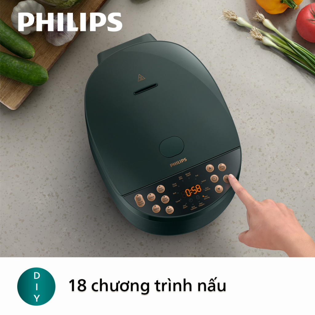 Nồi cơm điện tử Philips HD4518/62 | 1.8 lít | 6 lớp, lòng nồi dày - Hàng Chính Hãng