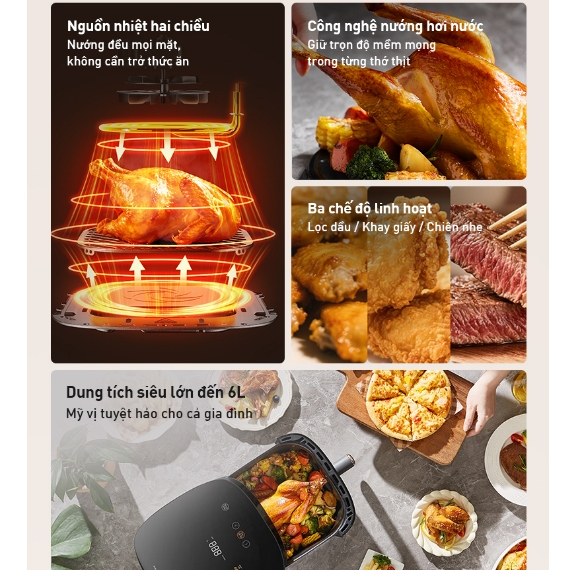 Nồi chiên không dầu 6L Joyoung JAF-579 | Công suất 2100W | 2 cửa sổ quan sát