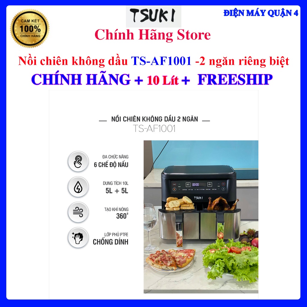 Nồi chiên không dầu TSUKI TS-AF1001 - STUKI-AF1001 - 2 ngăn riêng biệt - 10L