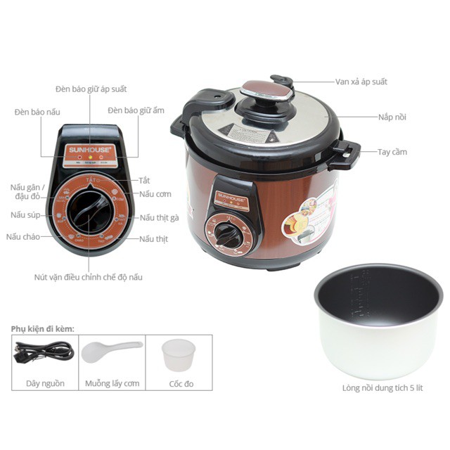Nồi hầm áp suất điện 5 lít Sunhouse SHD1552-SHD 1550 cao cấp