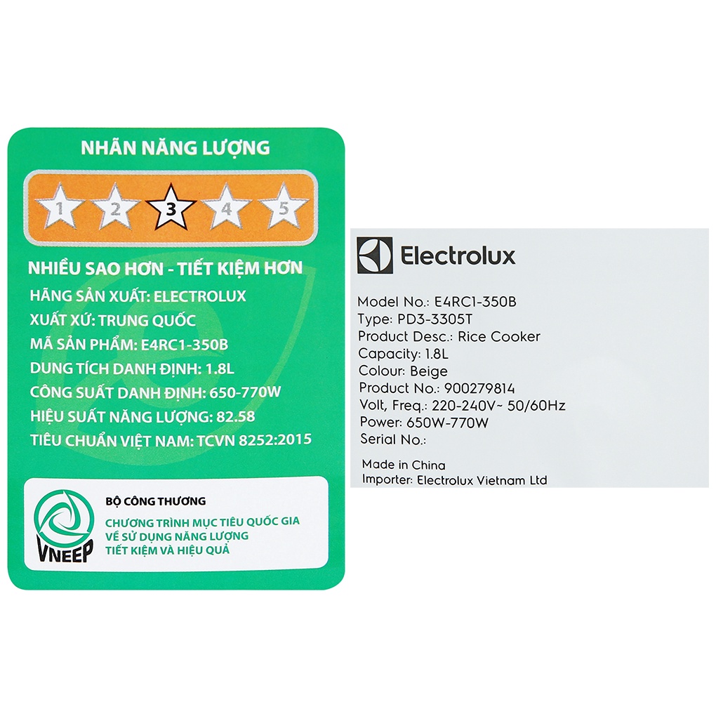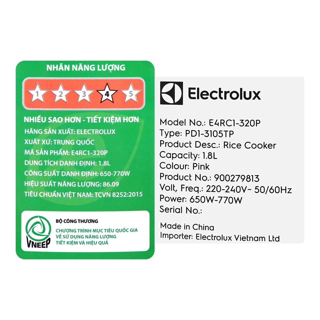 Nồi cơm nắp gài Electrolux 1.8 lít E4RC1-350B || E4RC1-320P