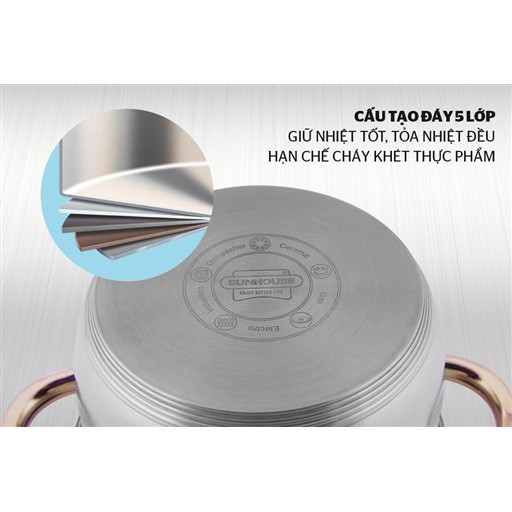 NỒI INOX 5 ĐÁY SUNHOUSE SHG242 16 20 24 26- Tách lẻ bộ SHG781