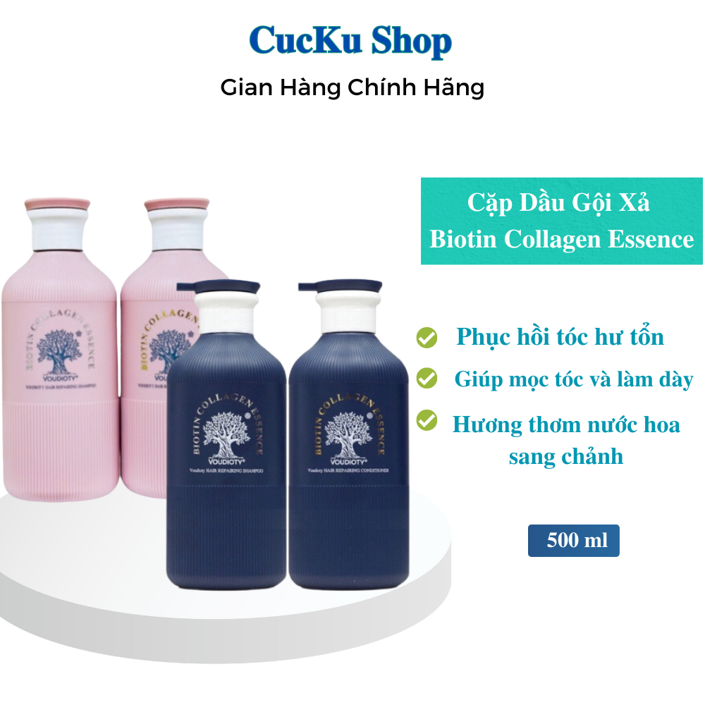 Cặp dầu gội xả Biotin Collagen Essence Voudioty hương nước hoa giúp phục hồi, mềm mượt tóc 500ml