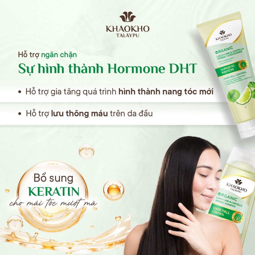Dầu Xả Thảo Dược Organic Rau Má Và Chanh KHAOKHO TALAYPU Công Thức Cải Tiến Mới Giúp Tóc Mềm Mượt 160ml/280ml