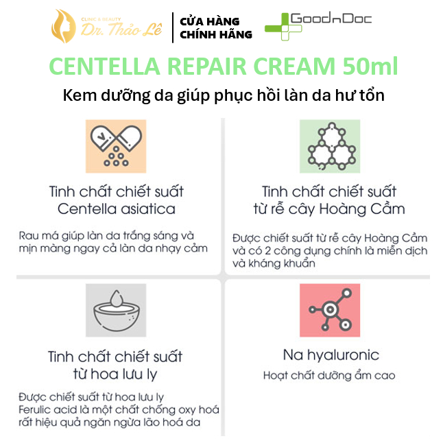 Kem Rau Má Dưỡng Da GoodnDoc Centella Repair Cream Phục Hồi Trắng Sáng Giảm Thâm Nám Chống Lão Hóa