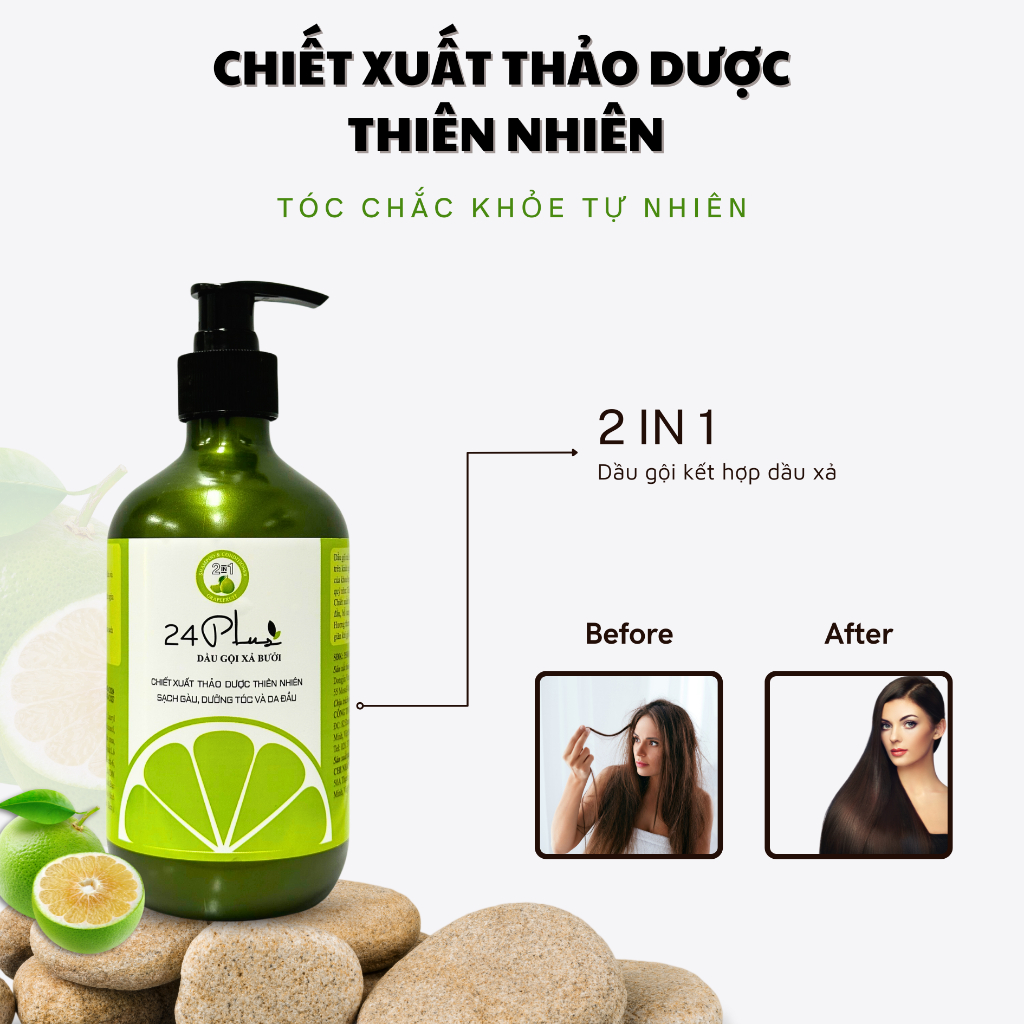 Dầu gội xả bưởi 24PLUS 2IN1 - Kết hợp gội & xả 250ml/500ml
