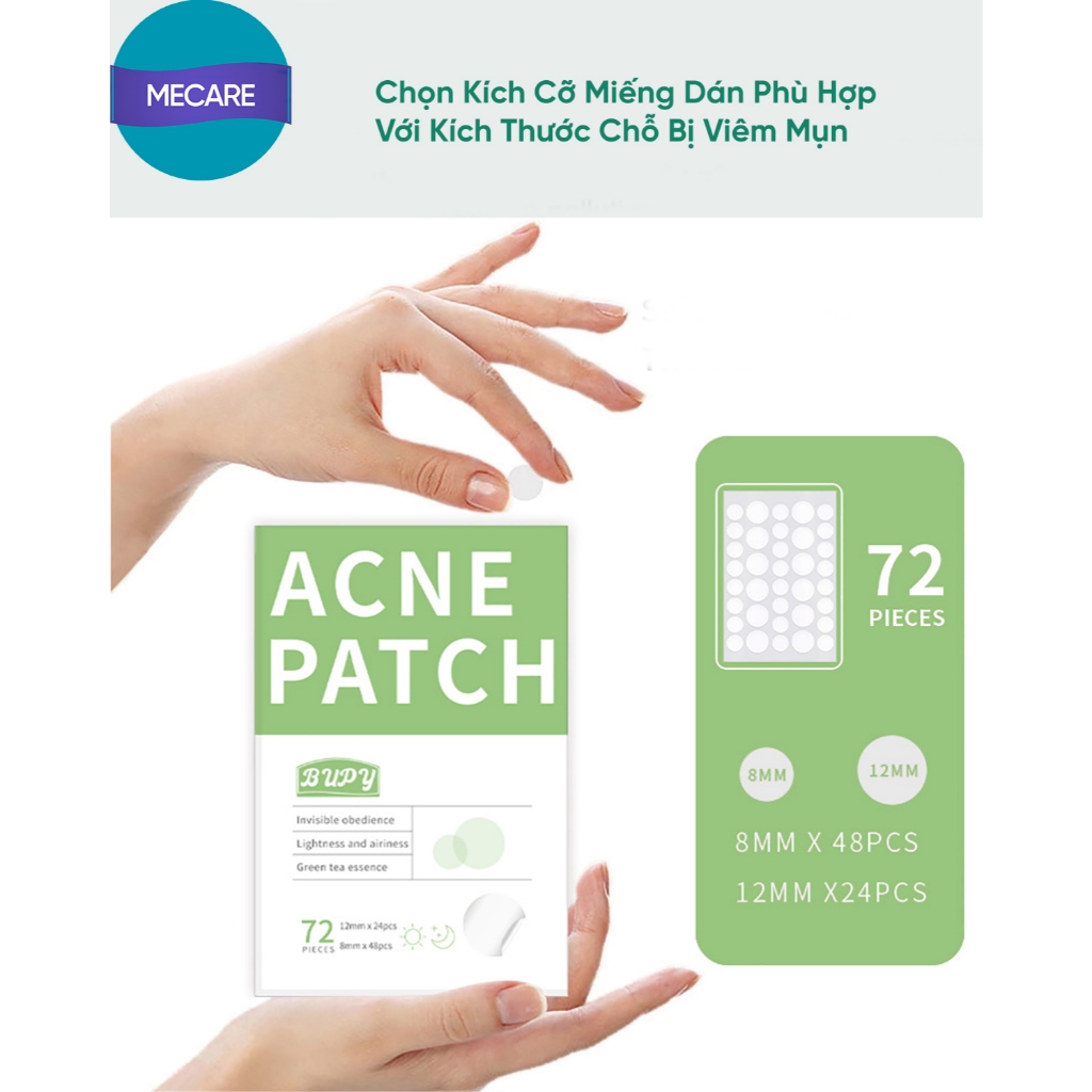 Miếng Dán Mụn BUPY Siêu Mỏng 0.1mm Sạch Mụn + Giảm Sưng + Che Mụn makeup 72M Ngày Đêm | Mecare