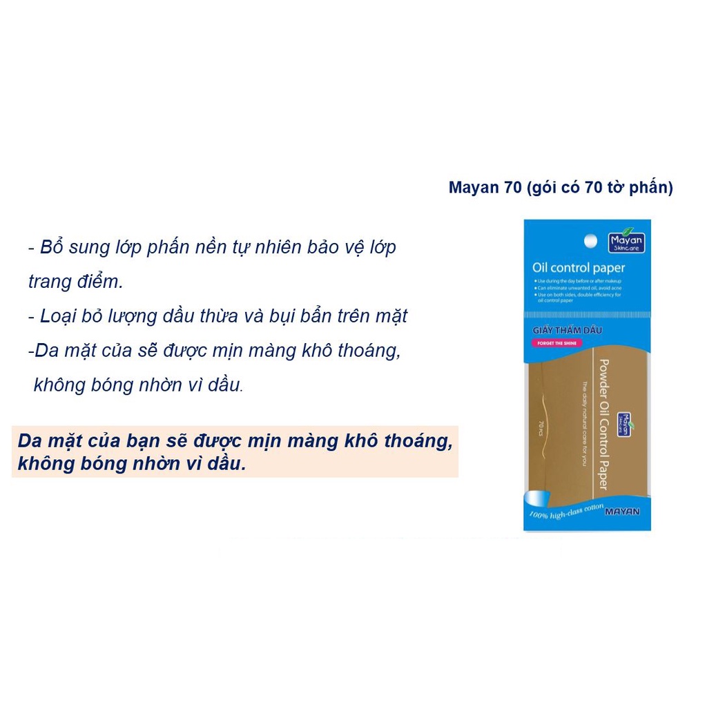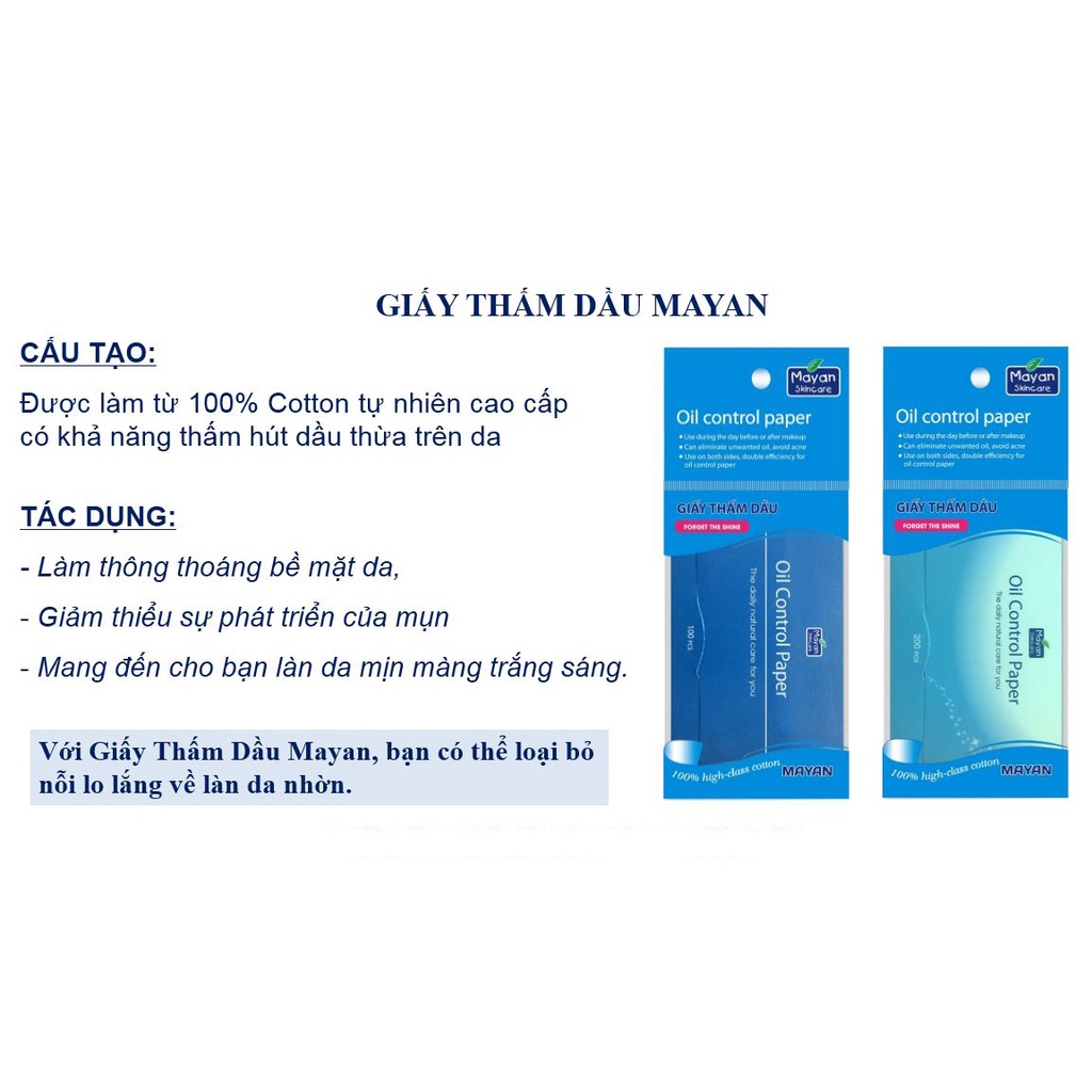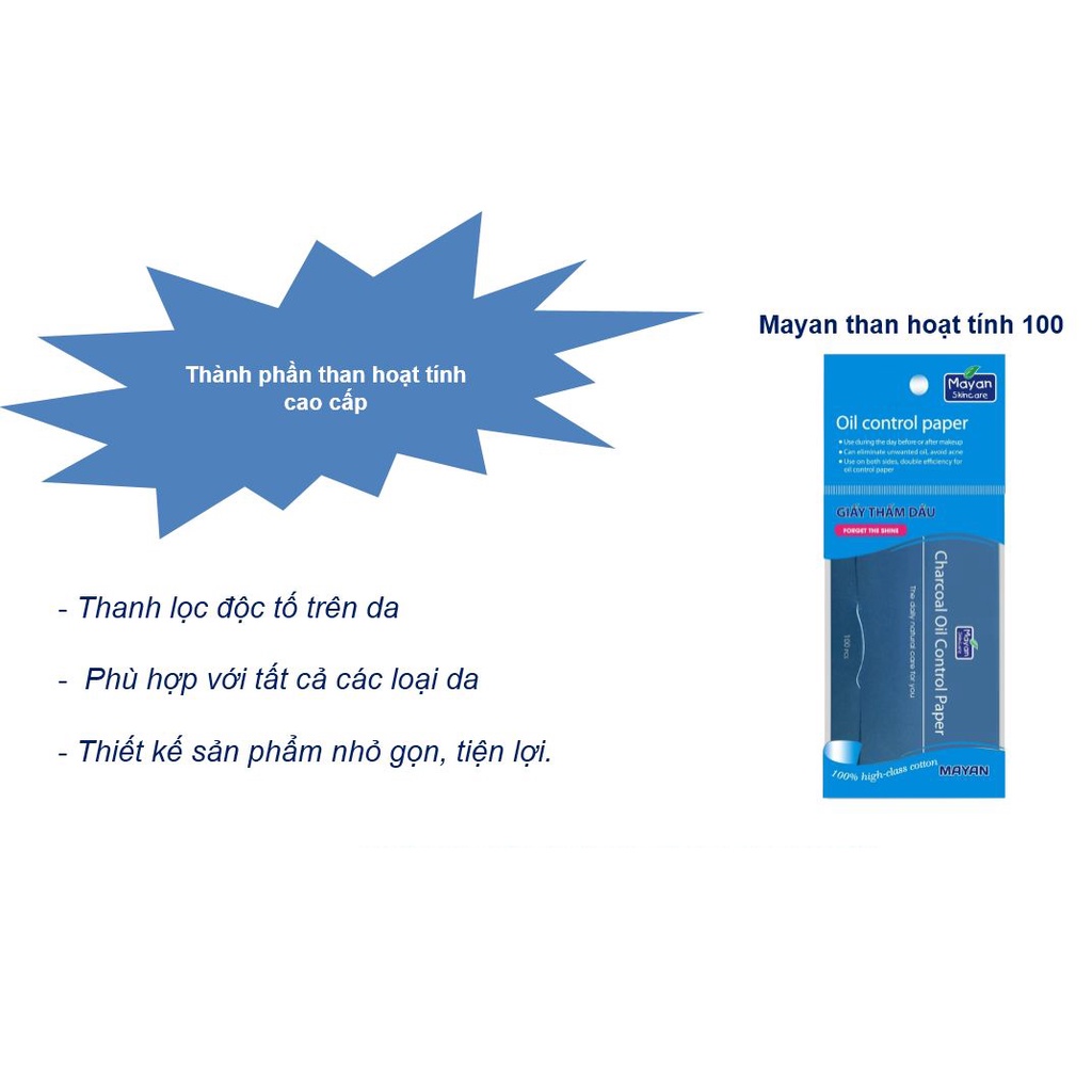 Giấy thấm dầu Mayan Skincare (Phấn / Thường / Than hoạt tính) loại bỏ dầu, nhờn, bụi, làm sạch da, bảo vệ lớp trang điểm