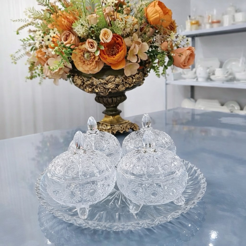 Bộ Thố thuỷ tinh hình dứa TB031 + kèm khay đựng thuỷ tinh sang trọng.
