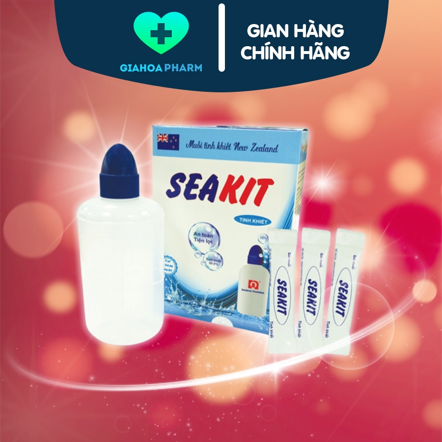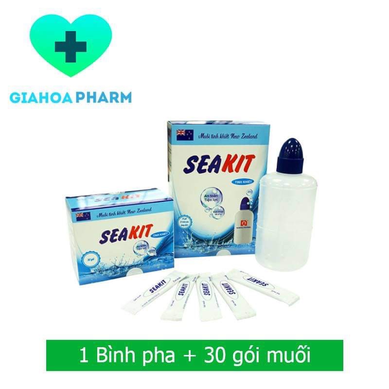 Bộ 1 bình pha rửa mũi + 30 gói muối Seakit (Muối tinh khiết New Zealand) an toàn trẻ sơ sinh, phụ nữ có thai, cho con bú