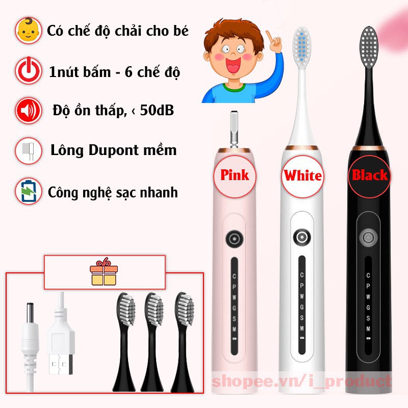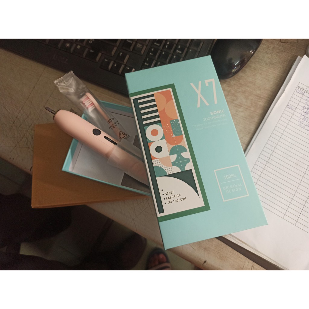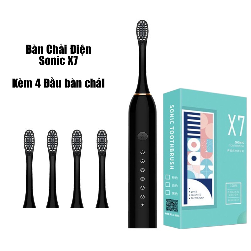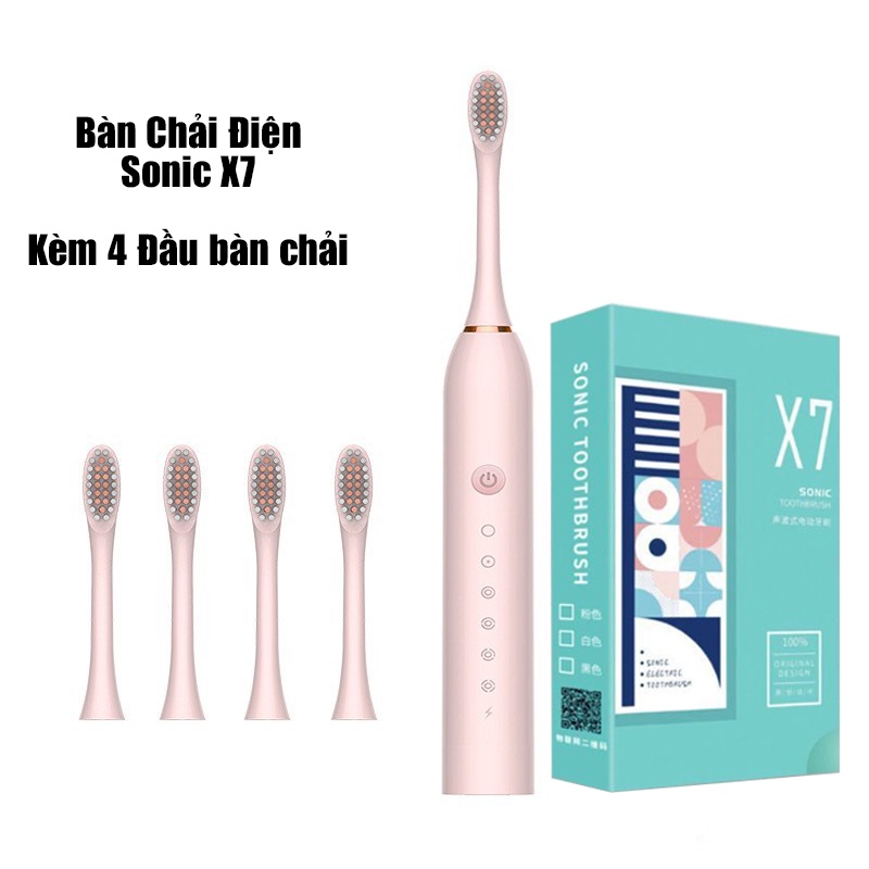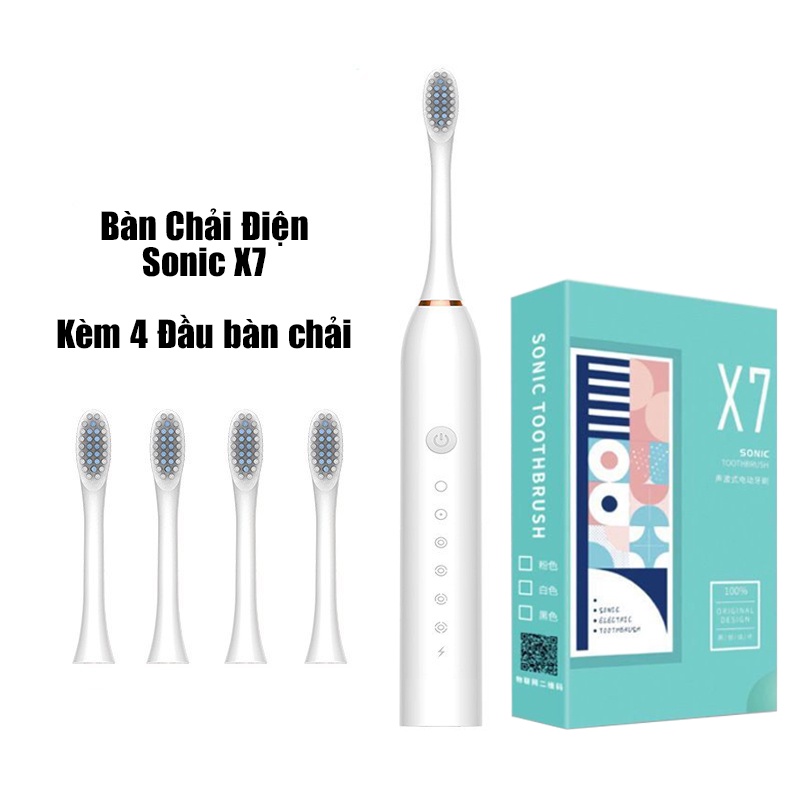 Bàn chải điện tự động đánh răng Sonic X7, Kèm 4 đầu bàn chải tiện dụng, Tem bảo hành trên máy, Chính hãng