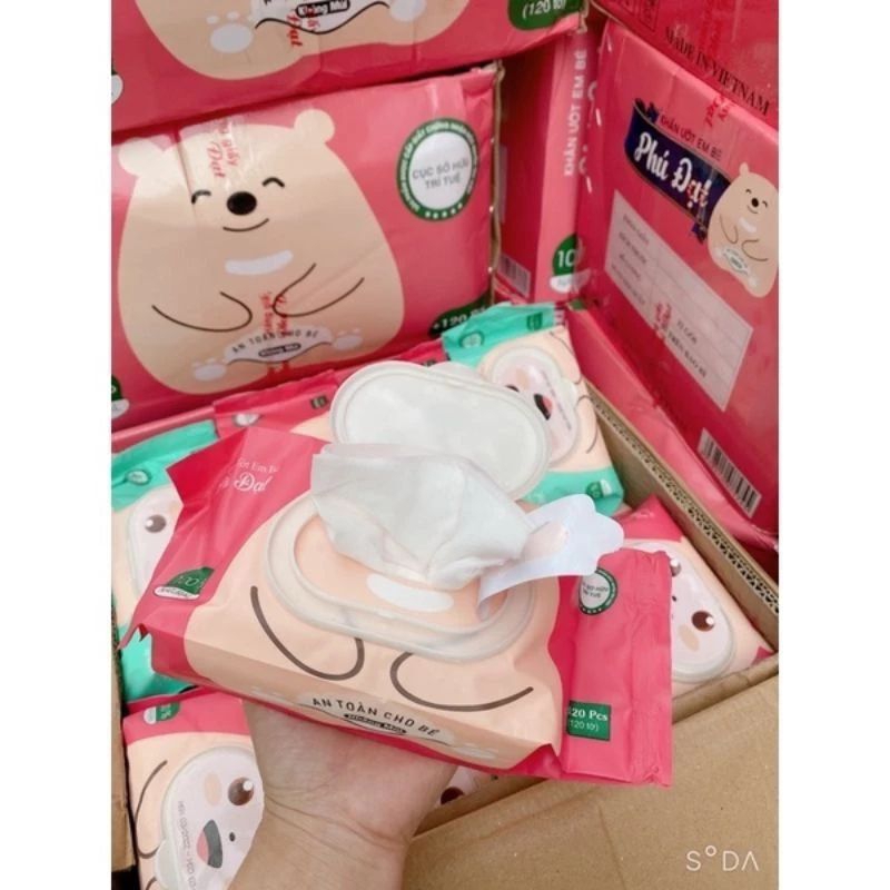 Khăn ướt gấu Béo phú đạt 120 tờ không mùi không parapen sử dụng cho em bé