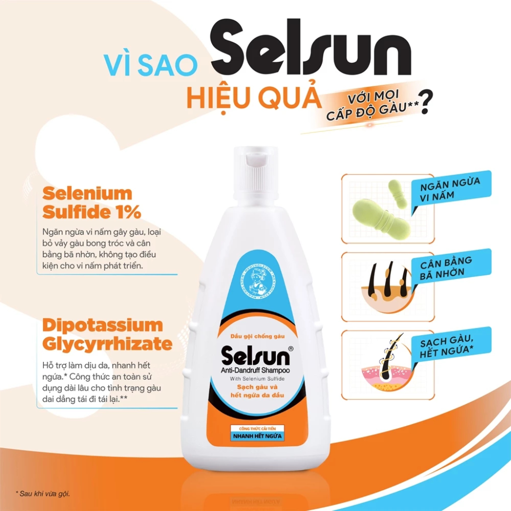 Dầu Gội SELSUN Ngừa Gàu, Sạch Gàu & Gảm Ngứa Da Đầu 1% Selenium Sulfide Anti-Dandruff Shampoo 50ml/100ml/250ml