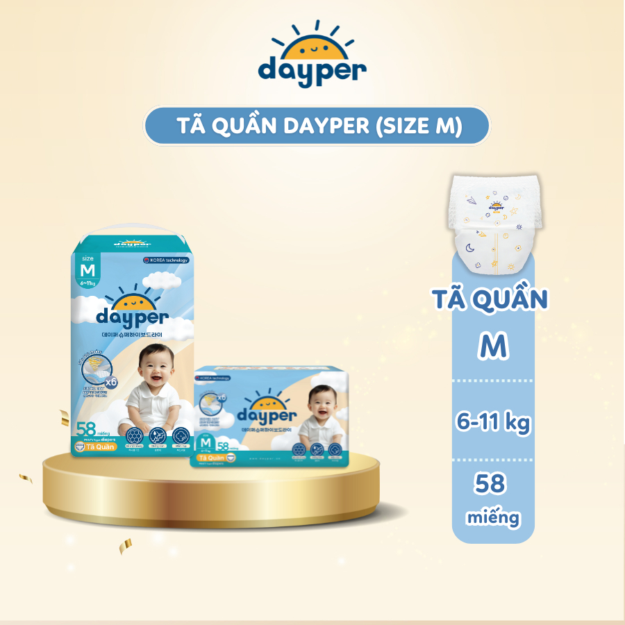 Tã/bỉm quần Dayper S60/M58/L52/XL50/XXL46 - Super Hive Dry mới thấm hút gấp 6 lần (+10 miếng)