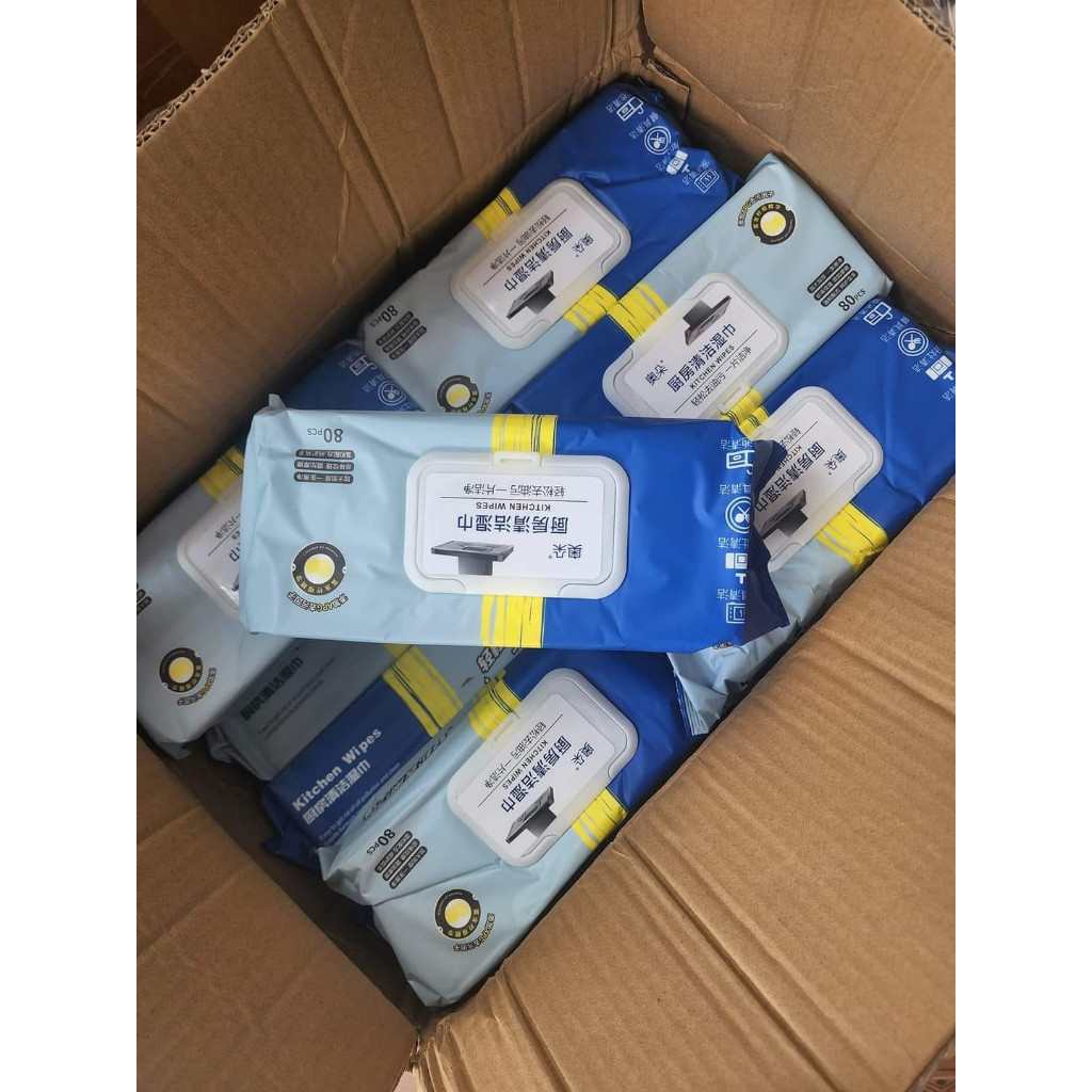 Thùng 10 gói Khăn ướt Lau bếp đa năng 1 gói 80 miếng Siêu tiết kiệm Màu Xanh
