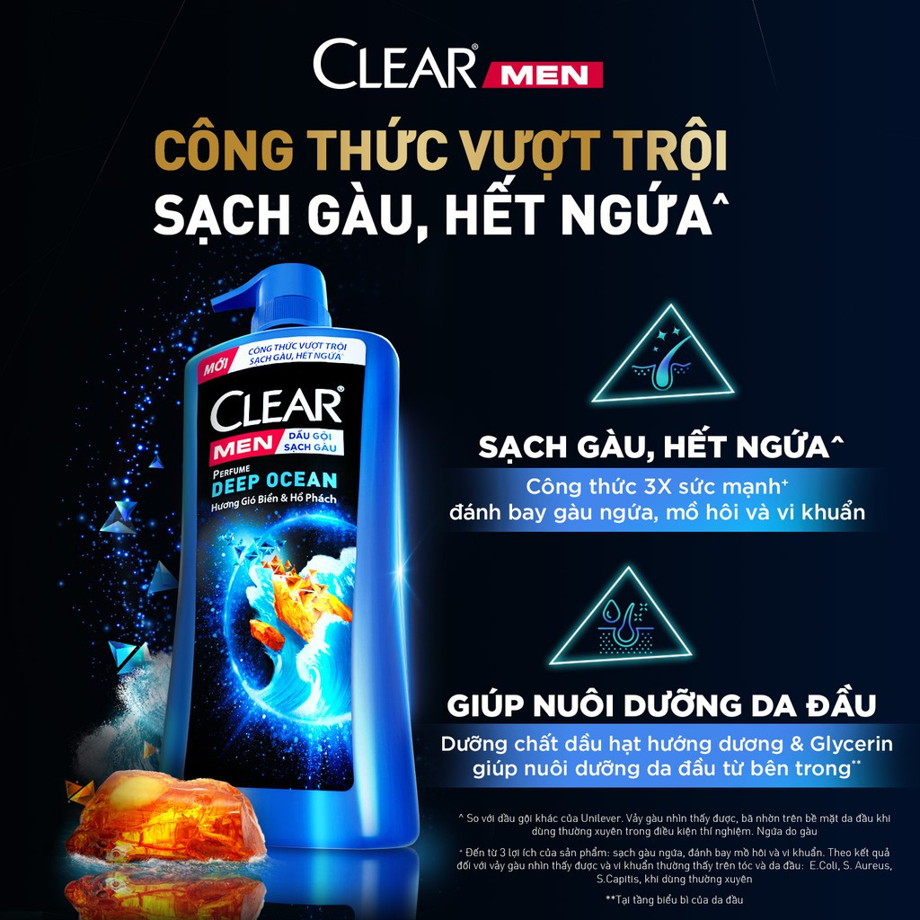 Dầu Gội Bạc Hà Cho Nam CLEAR MEN 630g [Tặng Kèm], 3 Tác Động, Deep Ocean, Warm Forest Chính Hãng