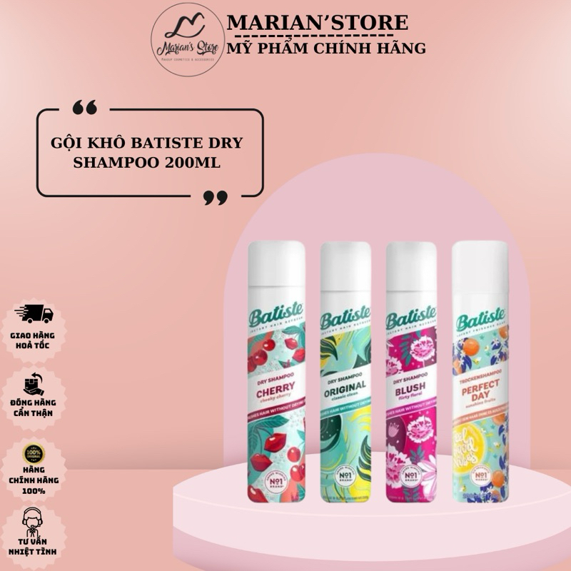 Dầu Gội Khô Batiste Full Size Đủ Mùi Hương, Giải Pháp 5 Giây Làm Sạch Mềm Mượt 3 Bước Nhanh Chóng